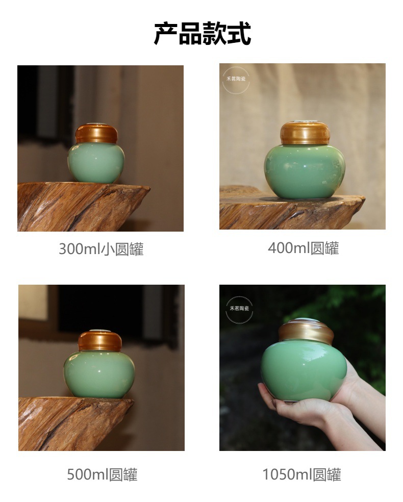 Круглая банка Целадон (300 мл); Круглая банка Целадон (400 мл); Селадон круглая банка (500 мл); Селадон круглая банка (1050 мл); Селадон тыква (200 мл); Селадон средняя баночка для тыквы (360 мл); Селадон баночка тыквы (450 мл); Селадоновая банка с прямым горлышком (300 мл); Селадон круглая прямая банка (450 мл); Селадон маленькая баночка башни (200 мл); Селадон средняя баночка башни (300 мл); Селадон талии банку (750 мл); Подарочная коробка One; Подарочная коробка 2; Подарочная коробка три (двойные консервы); Селадон большой баночка башни (400 мл)