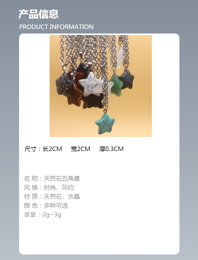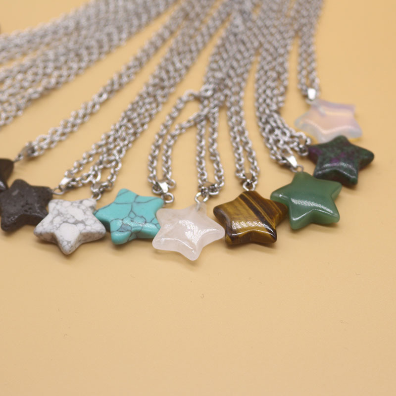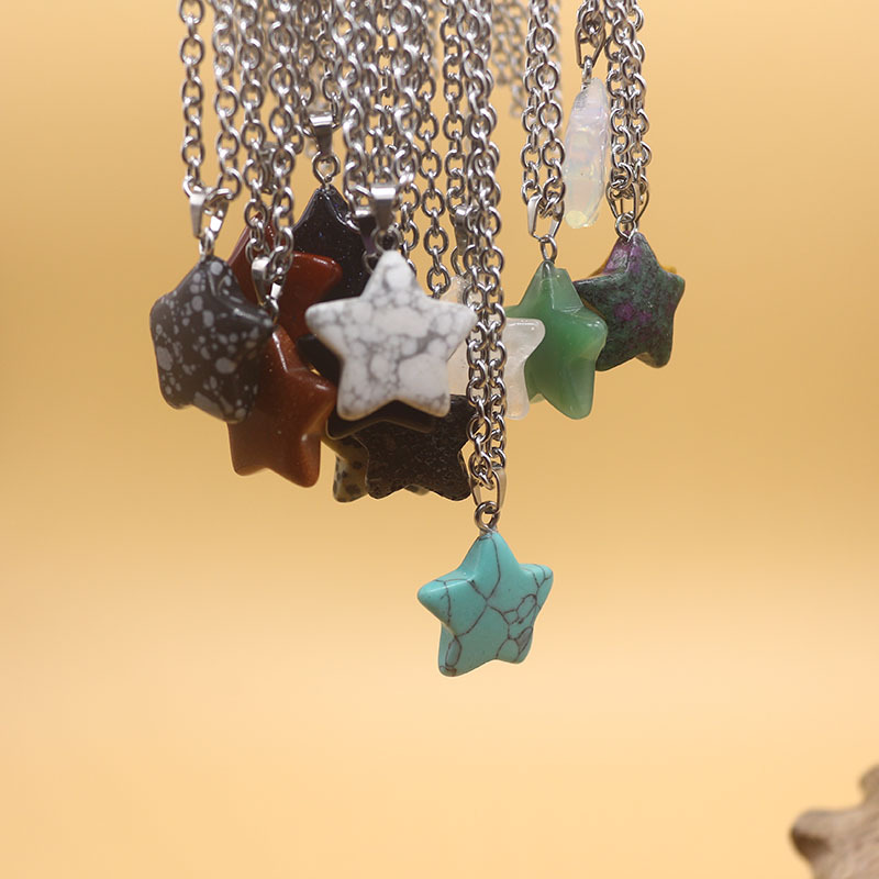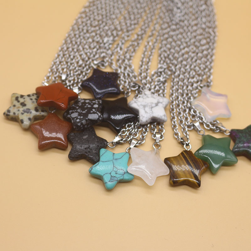 Трансграничная электронная коммерция натуральный камень хрустальный стеклянный камень пятиконечная звезда кулон ожерелье аксессуары ювелирные изделия звезды оптом