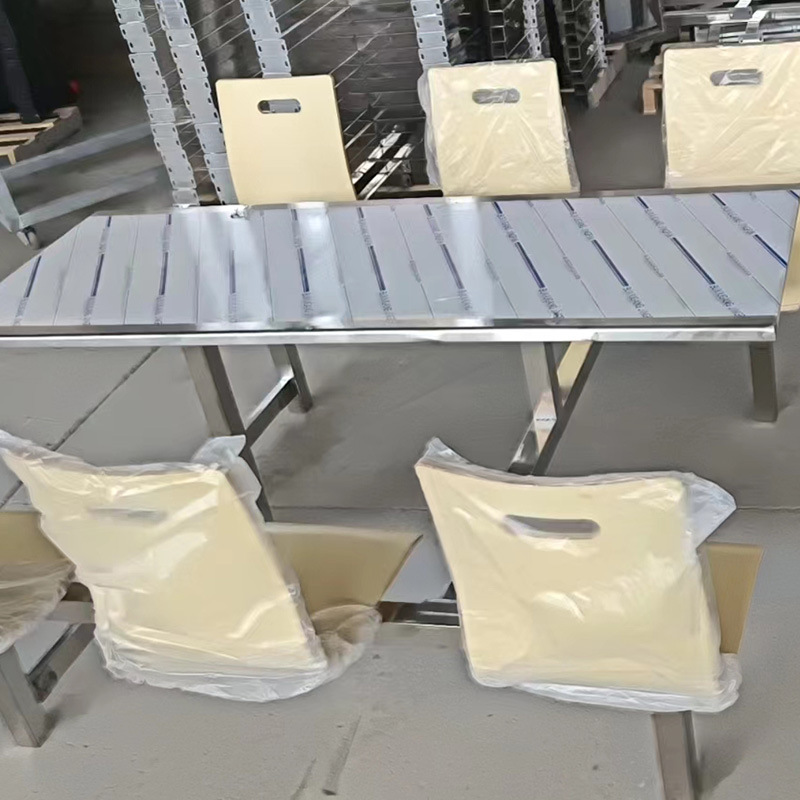 Поверхность из нержавеющей стали на 4 человека + изогнутая деревянная спинка стула; 6-человек из нержавеющей стали лицо + изогнутая деревянная спинка стула; Поверхность из нержавеющей стали на 8 человек + изогнутая деревянная спинка стула; Многослойная панель из цельного дерева для ног трубы на 4 человека + спинка-бабочка; Рабочий стол из нержавеющей стали на 4 человека + полая поверхность стула для выдувного формования
