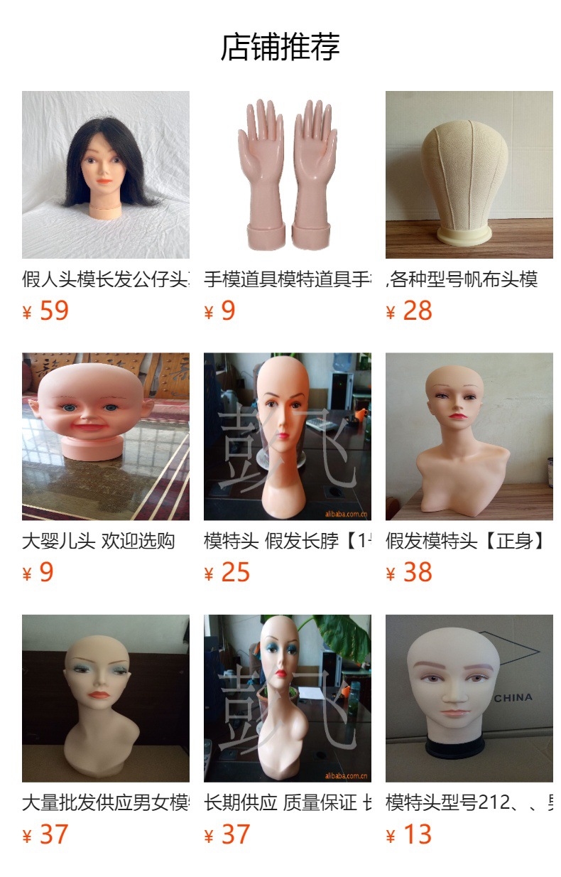 生产各种pvc材料、树脂材料模特头,并可根据客户要求生产各种肤色(黑色、咖啡色)模特头,完全能做到来样加工.