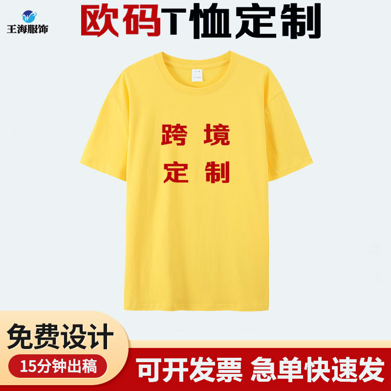 Футболка европейского размера из чистого хлопка весом 180 г, рекламная рубашка с индивидуальным логотипом, трансграничный экспорт, мужская футболка Amazon большого размера с короткими рукавами и вышивкой.