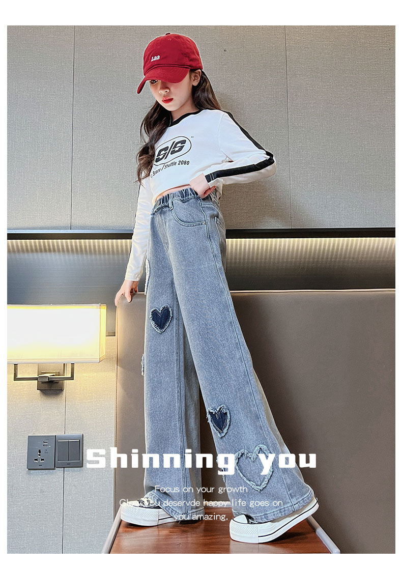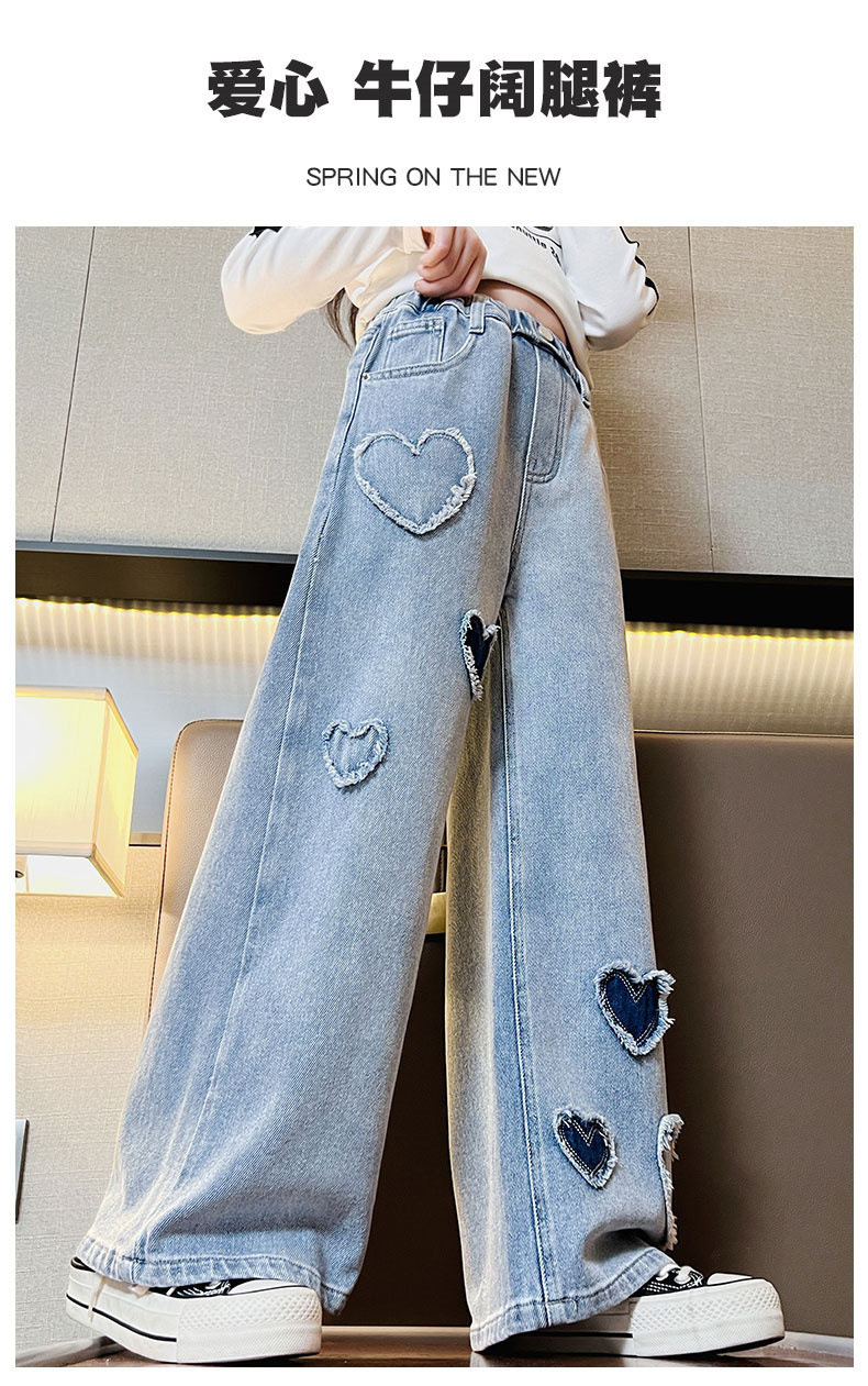 Джинсы для девочек Весна и осень Модные осенние Широкие штаны в западном стиле для больших детей Модные крутые осенние детские штаны с жареным уличным принтом интернет-знаменитостей