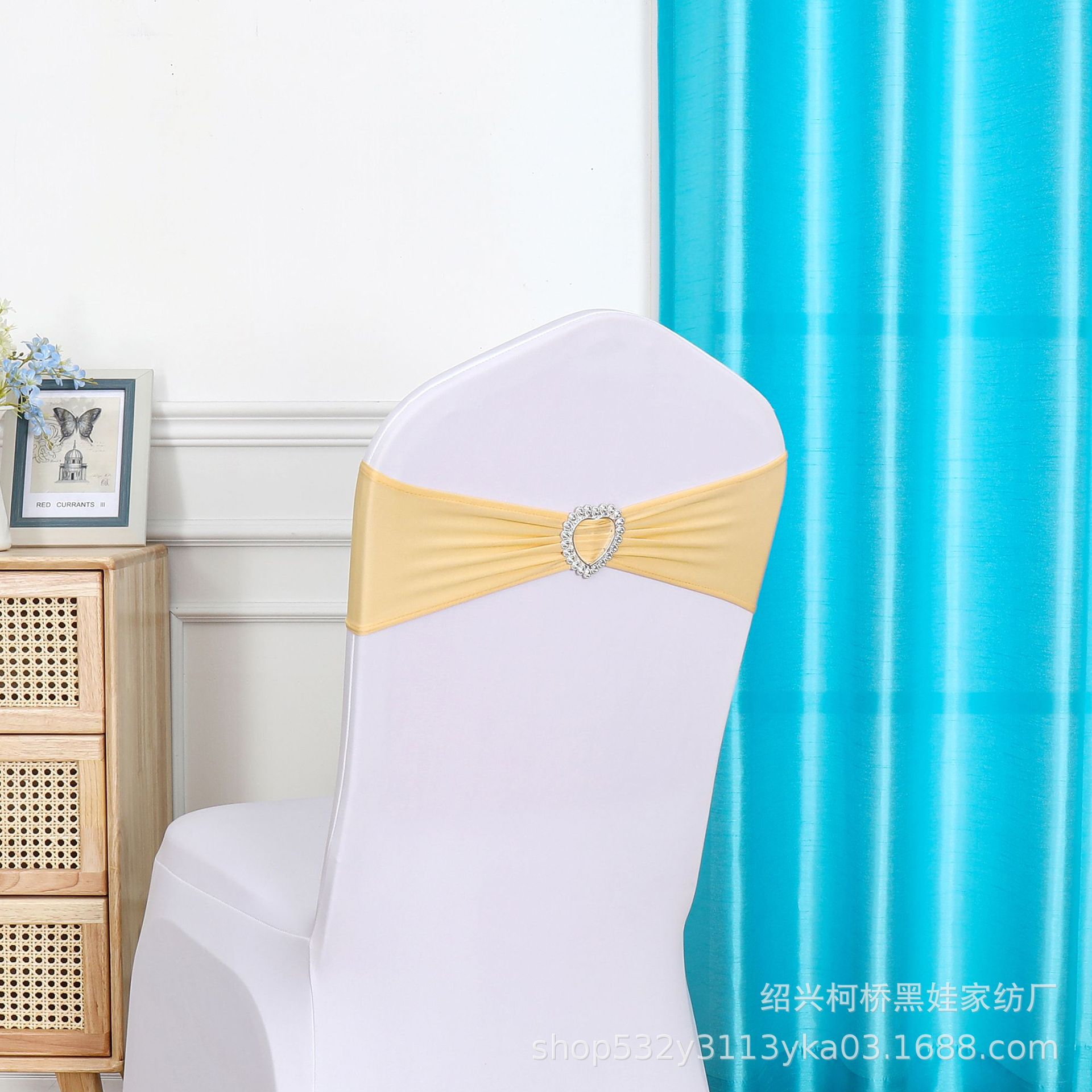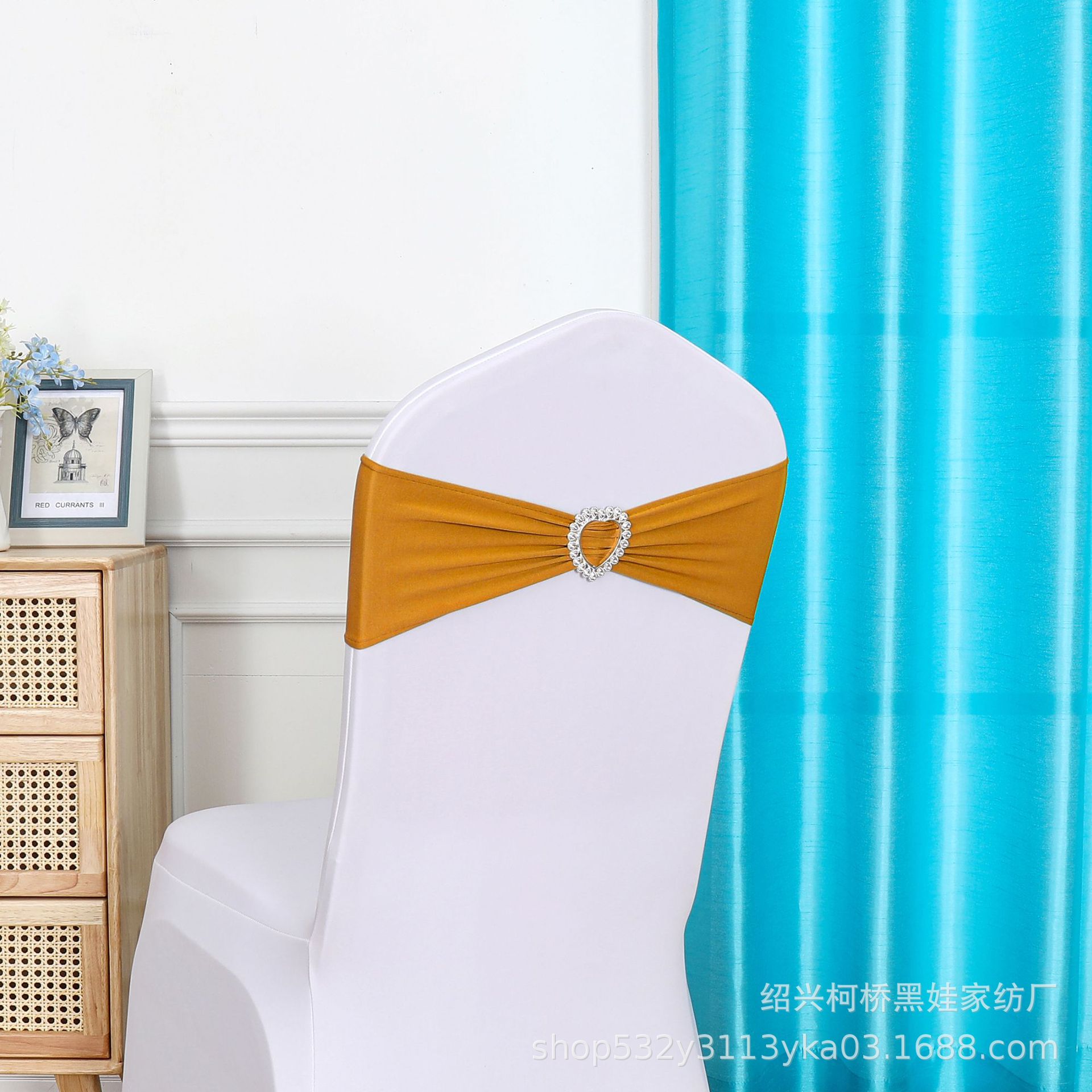 Декоративный эластичный ремешок-ободок для спинки стула без завязок, с цветочным бантом и сердечком, для отелей, свадеб и банкетов