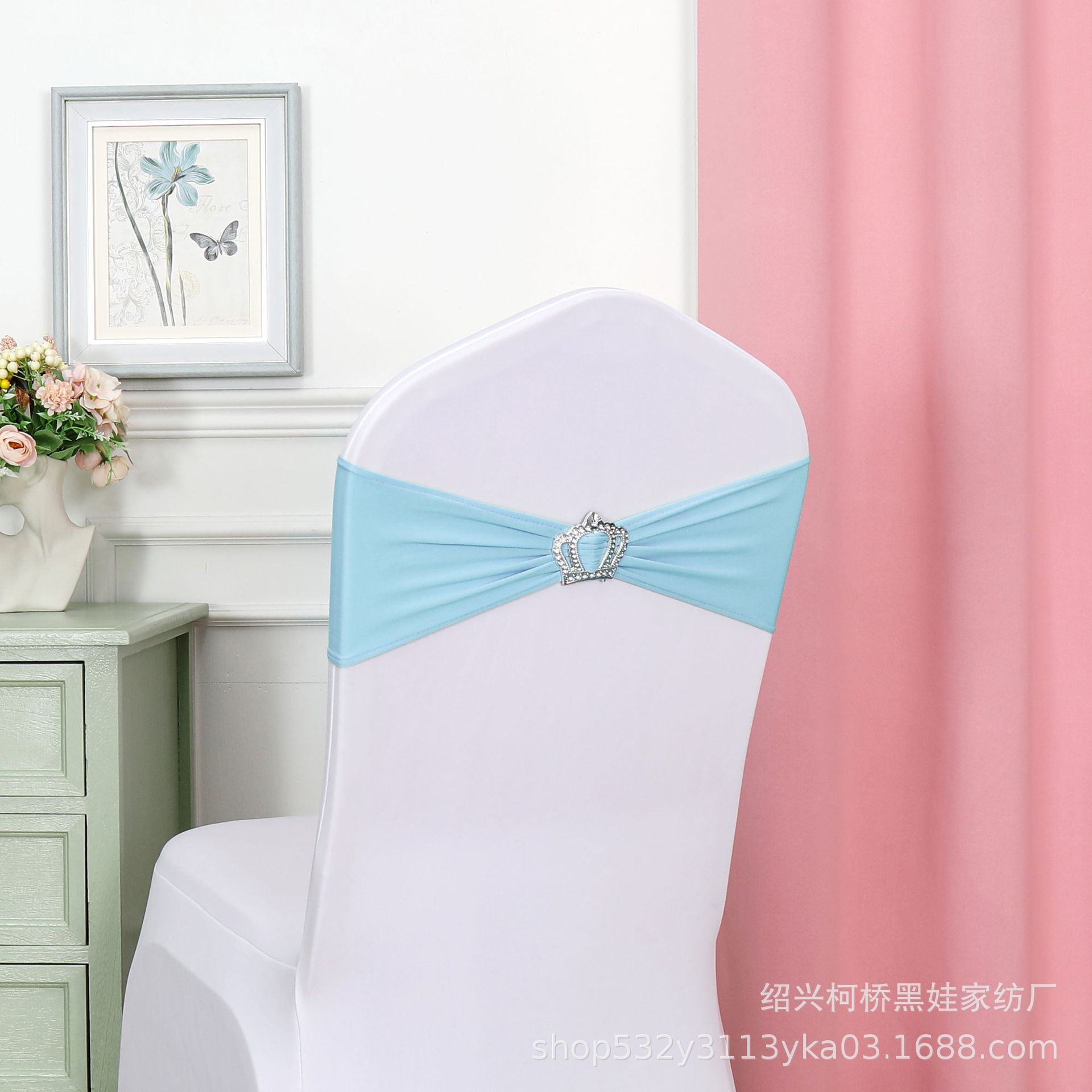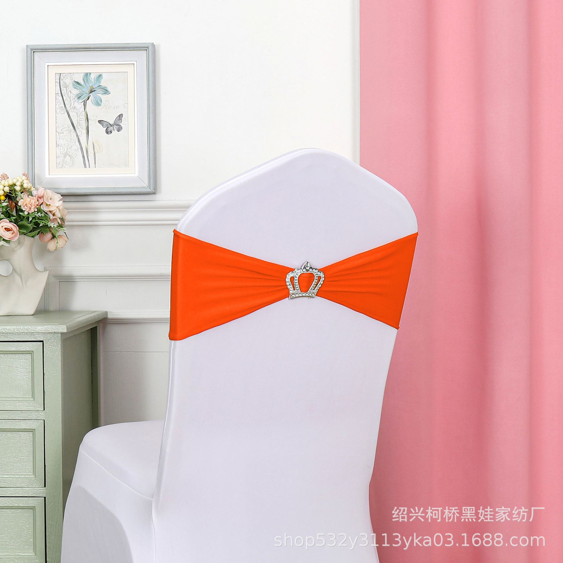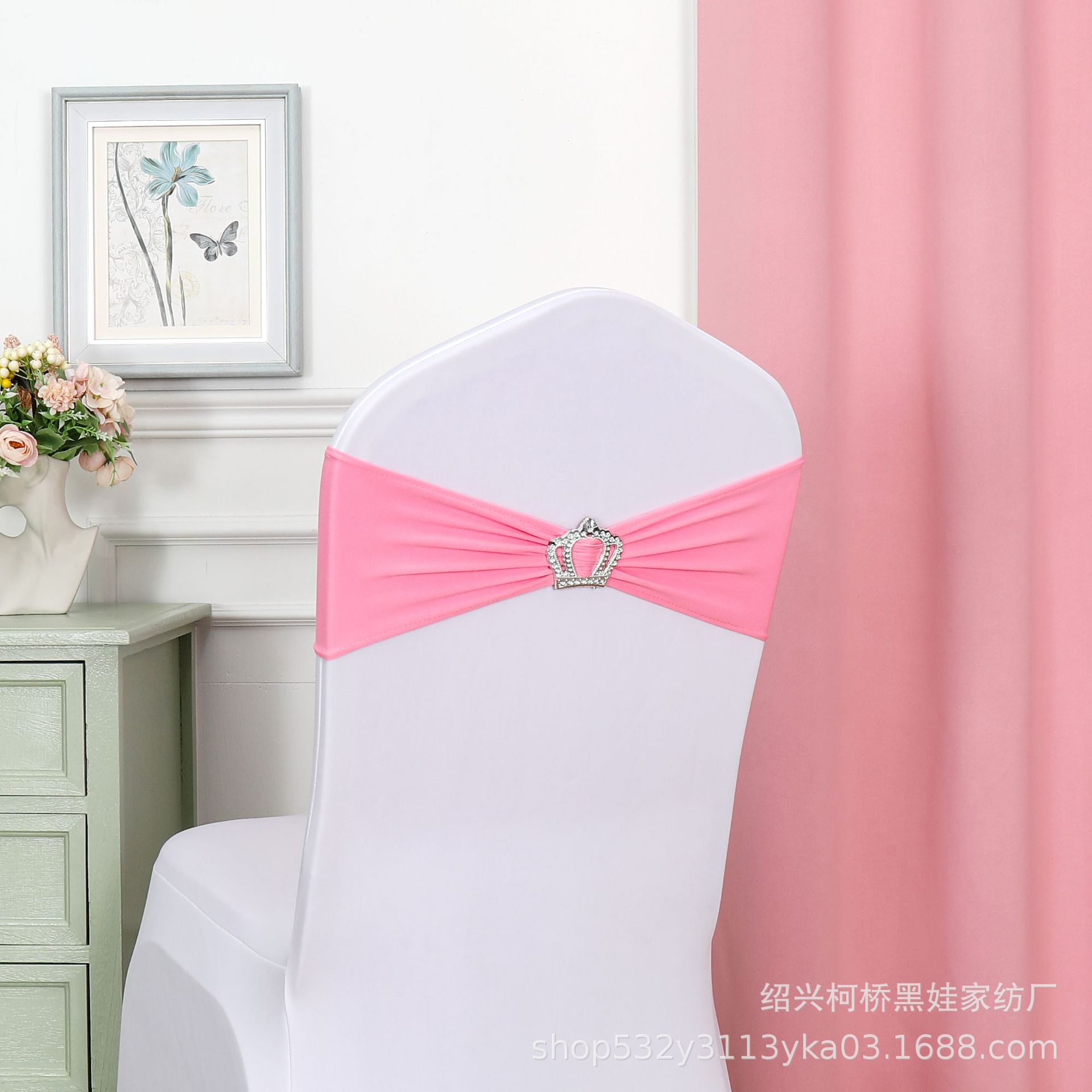 Чехол для банкетного стула с цветочным бантом, короной, алмазной пряжкой и эластичной лентой, украшение для свадьбы, бесплатная свадебная лента