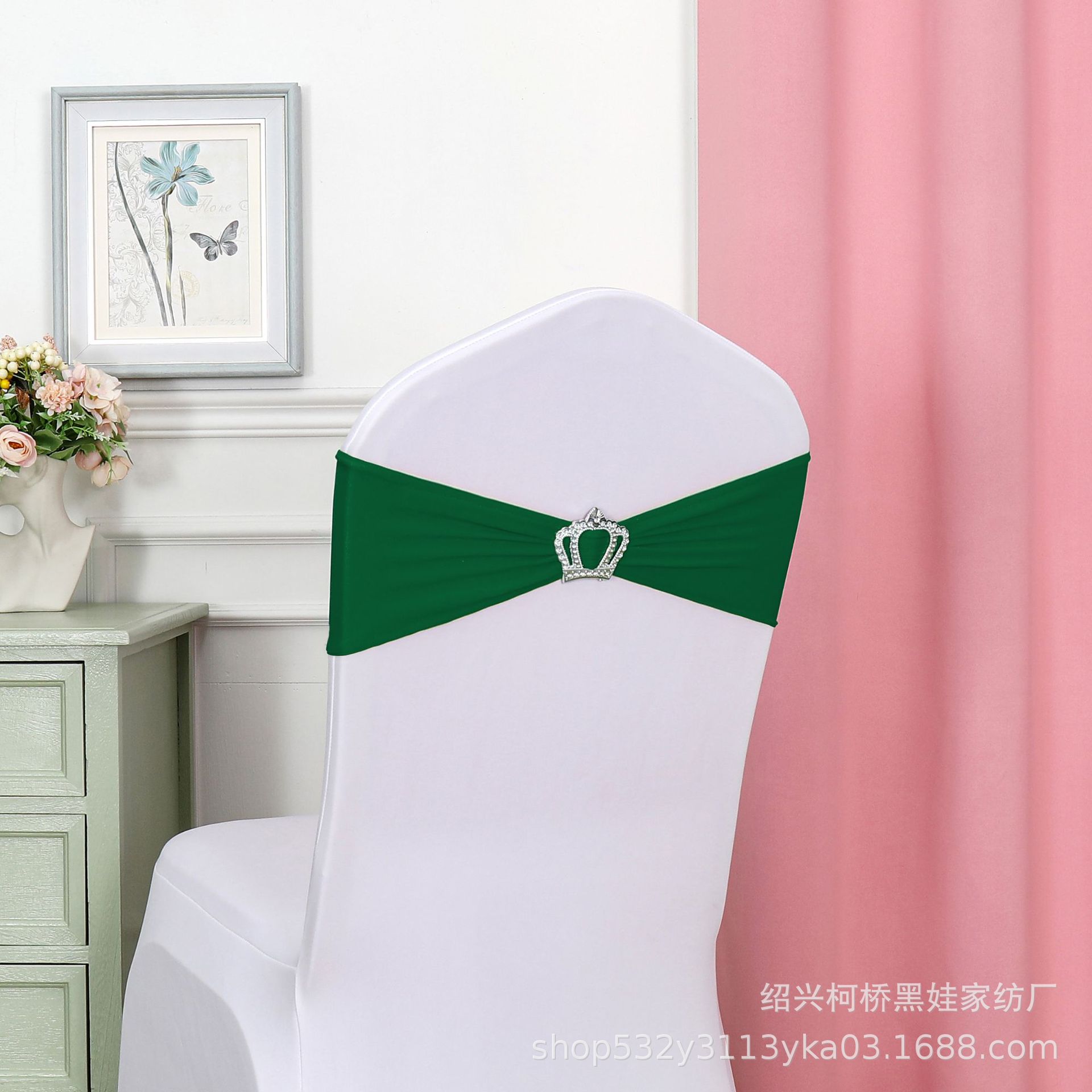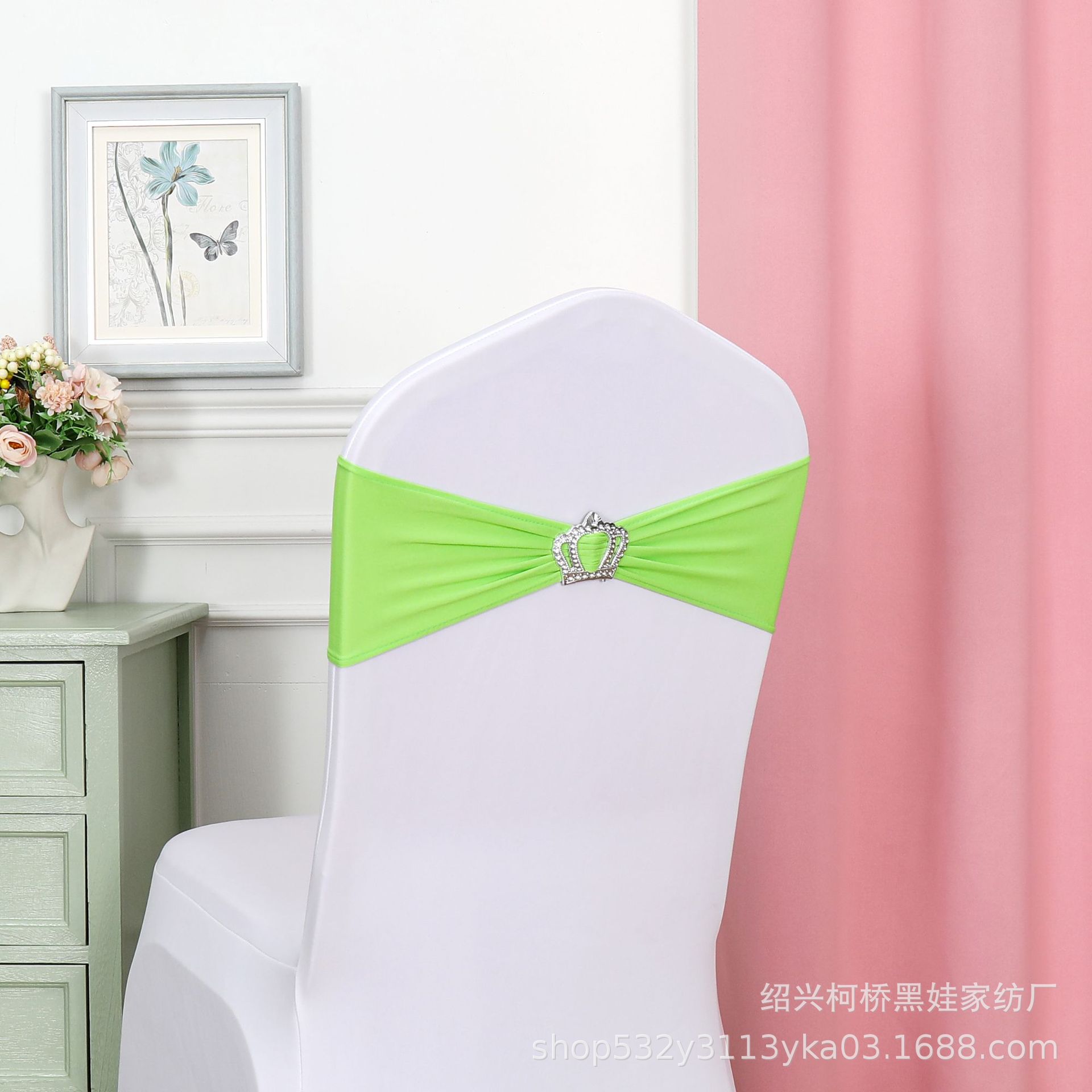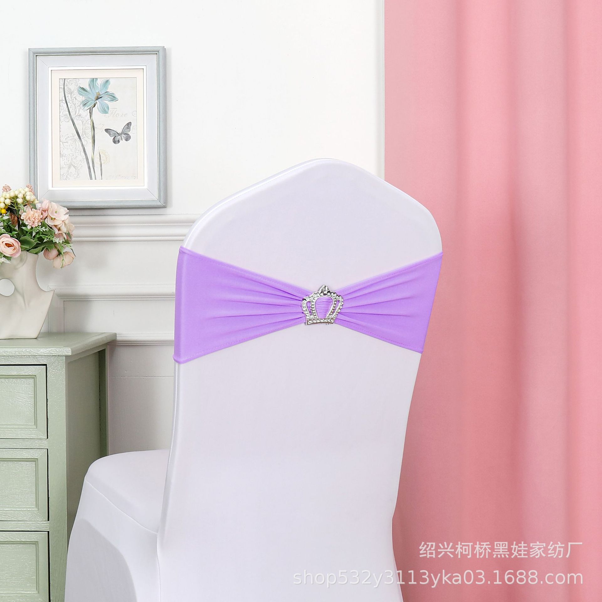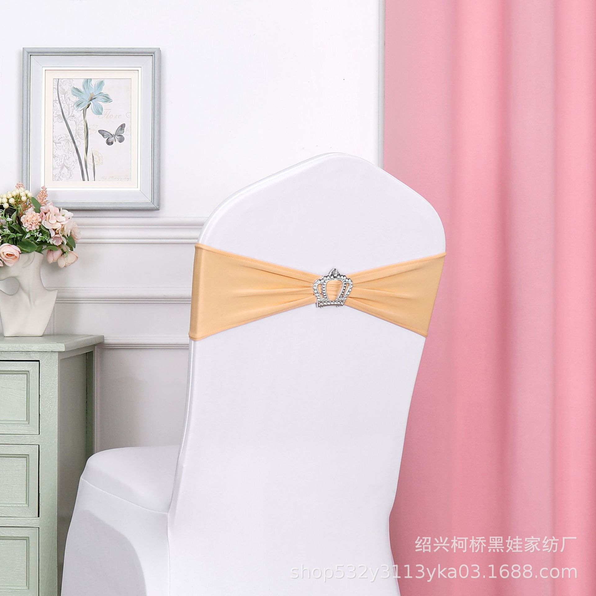 Чехол для банкетного стула с цветочным бантом, короной, алмазной пряжкой и эластичной лентой, украшение для свадьбы, бесплатная свадебная лента