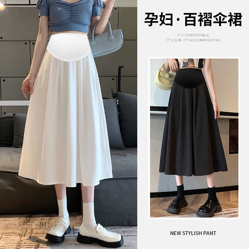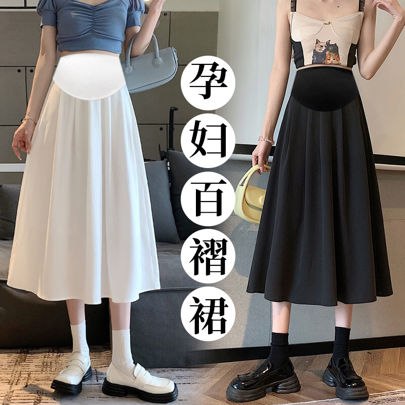 Костюм для беременных, плиссированная юбка, тонкая юбка, Женская на весну и лето 2023, новая юбка А-силуэта, юбка-зонт средней длины с высокой талией
