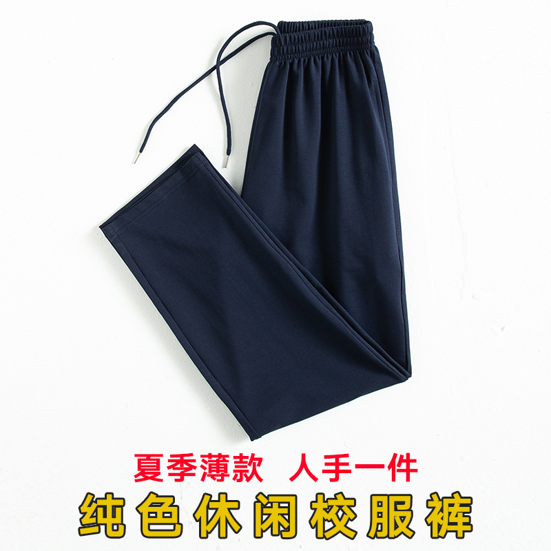 Школьные брюки темно-синие однотонные спортивные штаны для мужчин и женщин, учащиеся средней школы, эластичные штаны для школьной формы, свободные штаны Весна, Осень и лето