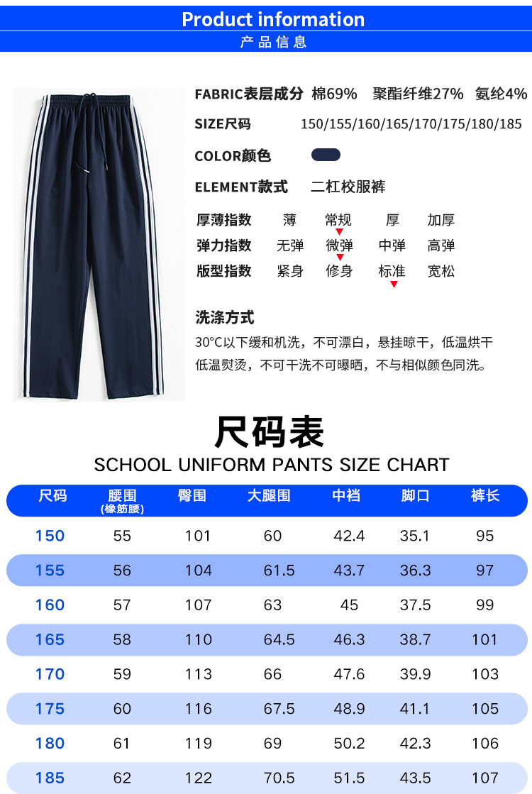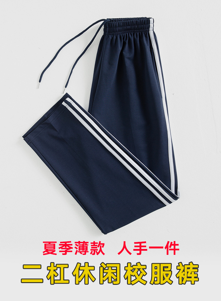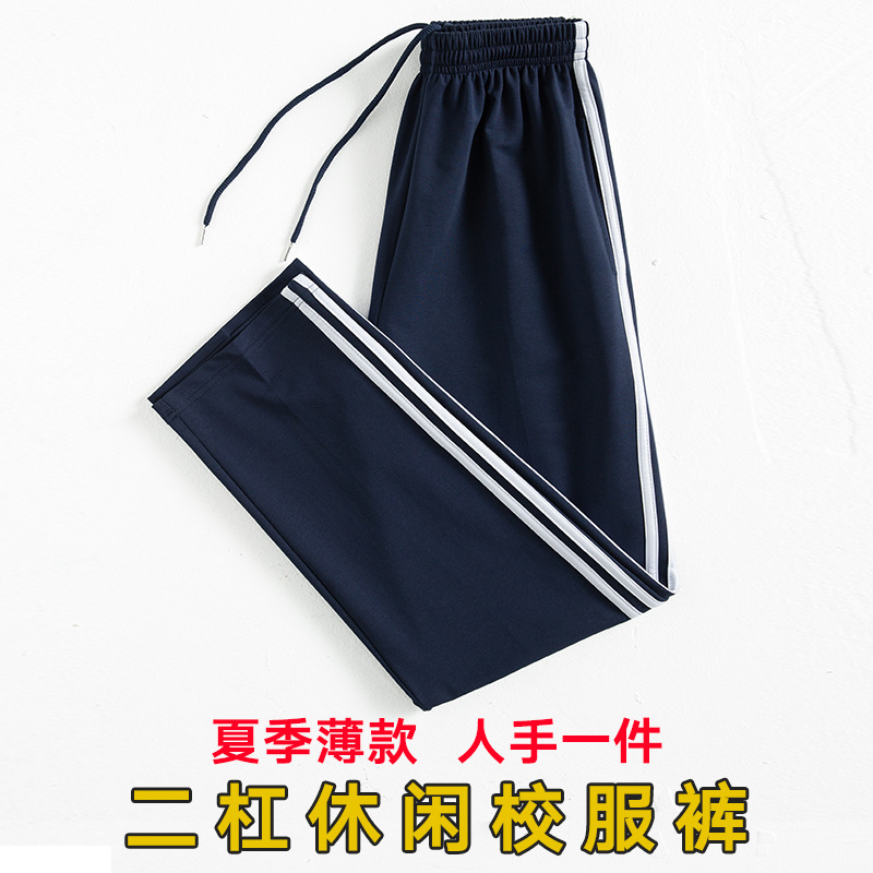 Школьная форма брюки два бара мужчины и женщины младших школьников свободные весна и осень лето тонкие темно-синие школьные брюки два бара