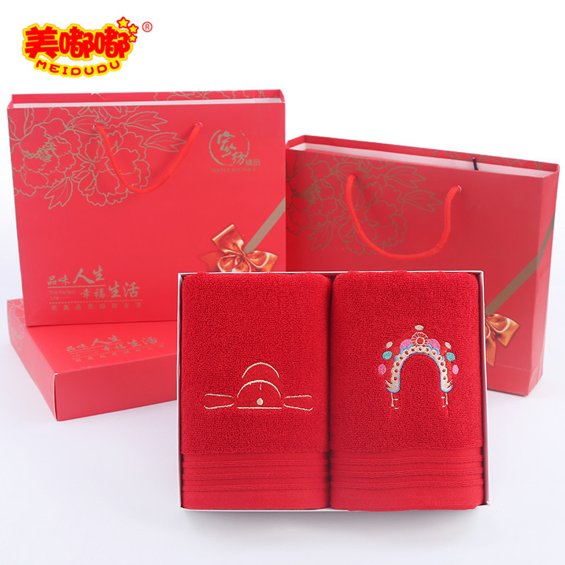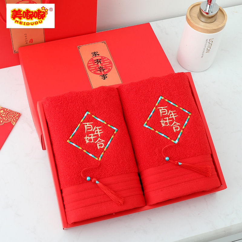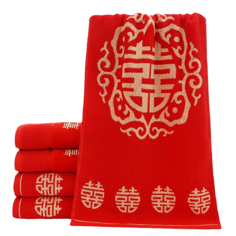 Хлопок вышитый счастливый персонаж свадебный подарок красный не выцветает Блестящий шелковый сопутствующий подарок свадебное бархатное Красное Полотенце с вырезом из хлопка