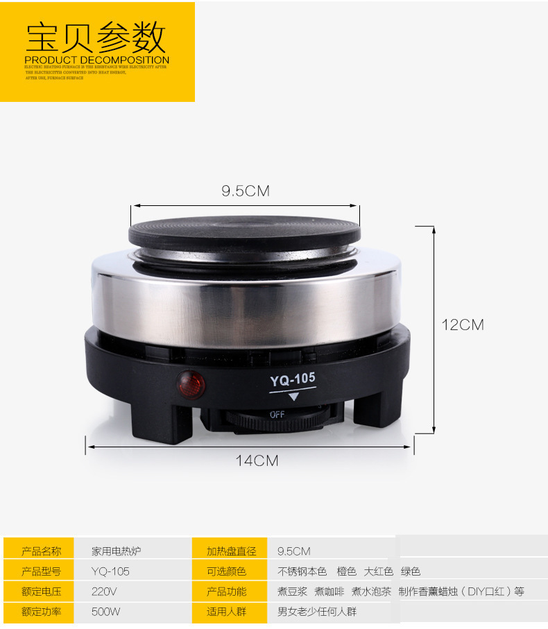 110 В американский стандартный штекер Япония США Тайвань электрическая печь небольшая электрическая печь YQ105 электрическая печь 500 Вт