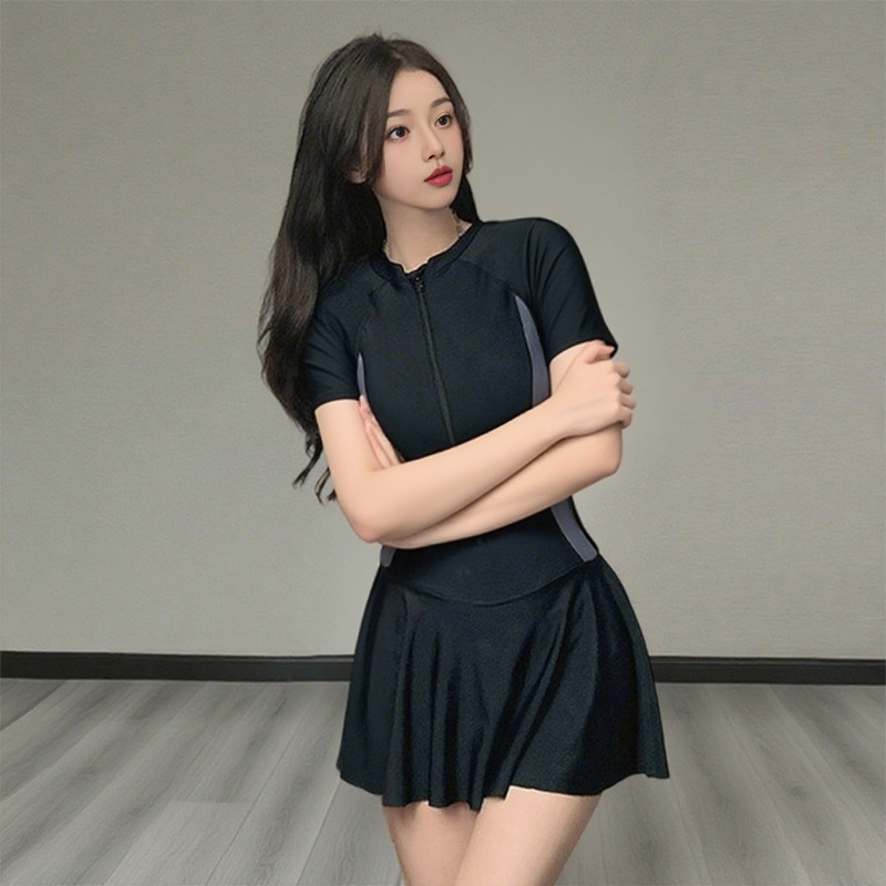 Консервативный цельный купальник, женская юбка, спортивная одежда, тонкий простой горячий весенний черный женский летний гоночный купальник оптом