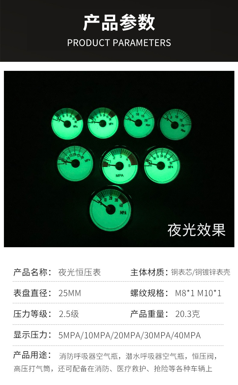 Небольшой Измеритель Высокого Давления светящийся манометр 25 мм Манометр постоянного давления Манометр 5/10/30/40 МПа цилиндр CO2 маленький измеритель