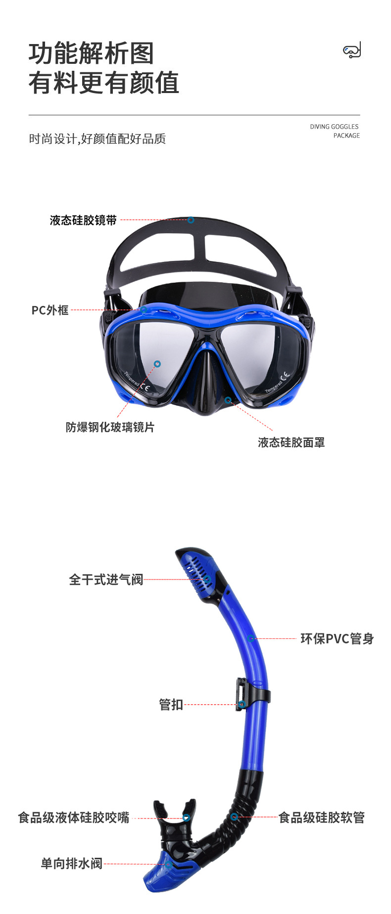 Трансграничное снаряжение для подводного плавания Дайвинг-зеркало Дыхательная трубка Набор для подводного плавания Маска для подводного плавания