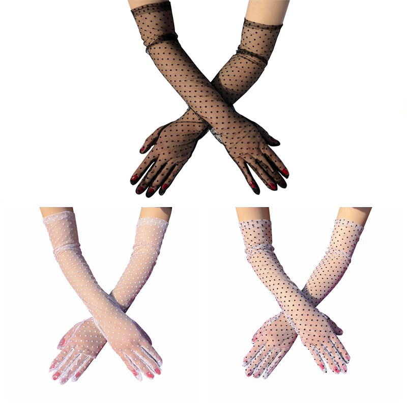 Трансграничные кружева точка длинные женские Защита от солнца декоративные перчатки Расширенная волна точка свадебное платье перчатки
