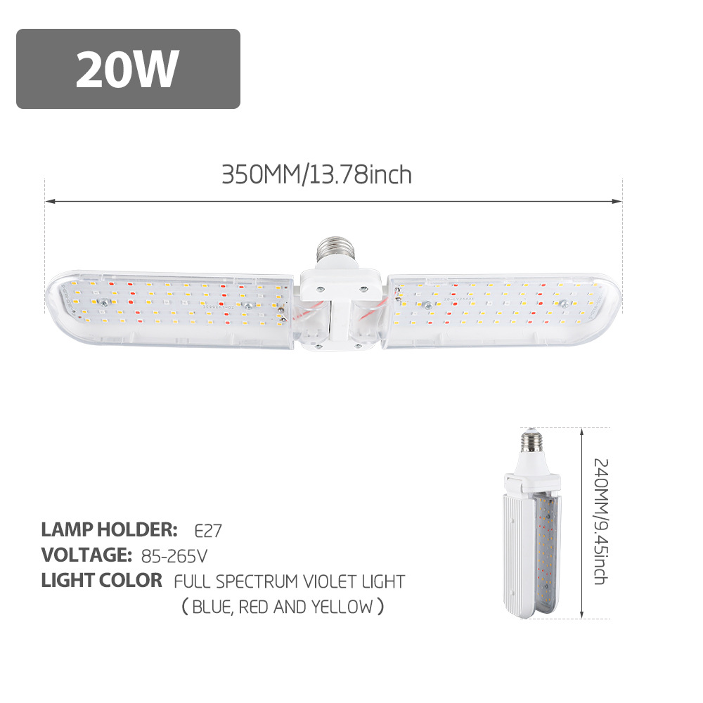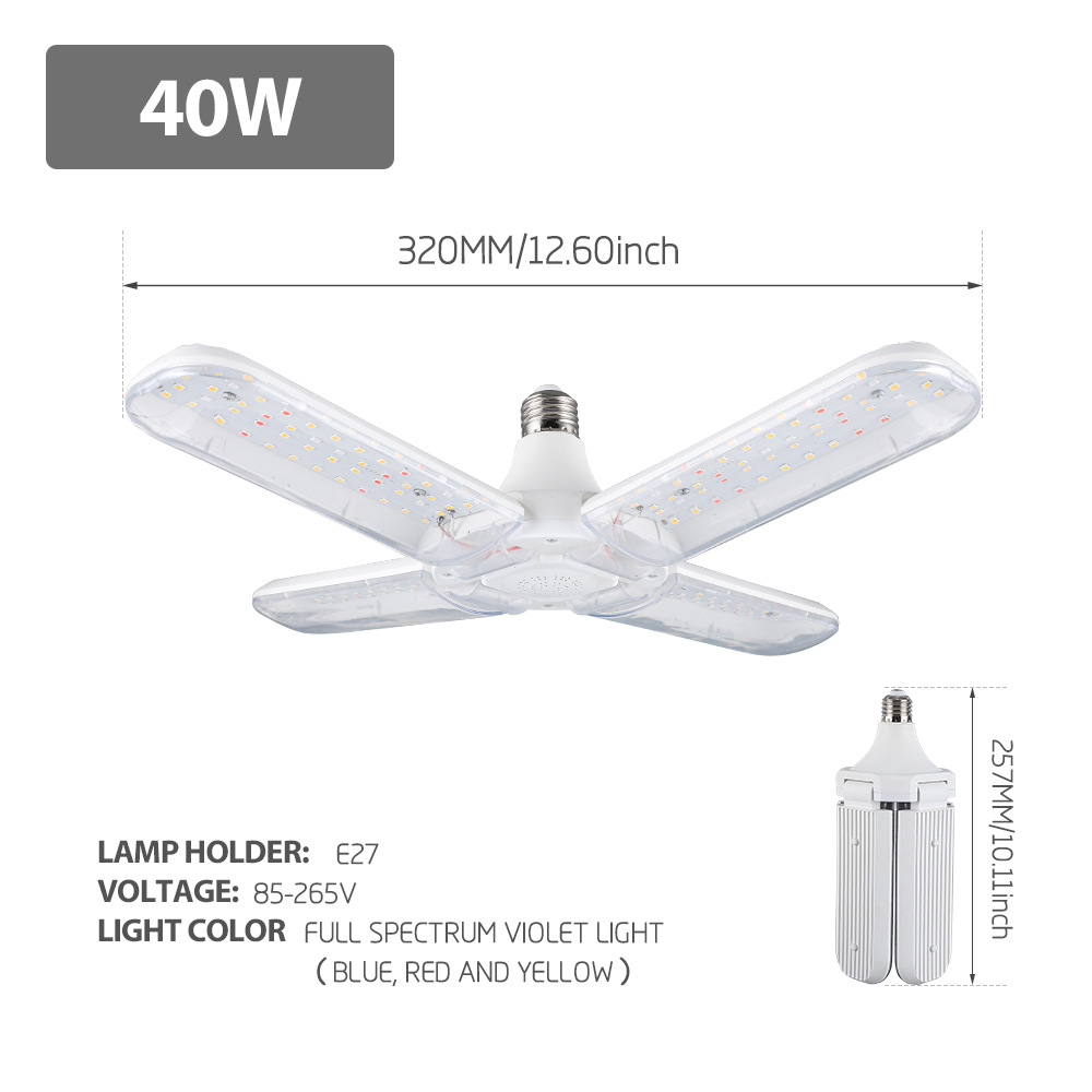 Трансграничный складной светодиодный светильник для выращивания растений с четырьмя листьями E27, полный спектр, фиолетовый цветок, мясистый свет для посадки