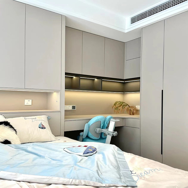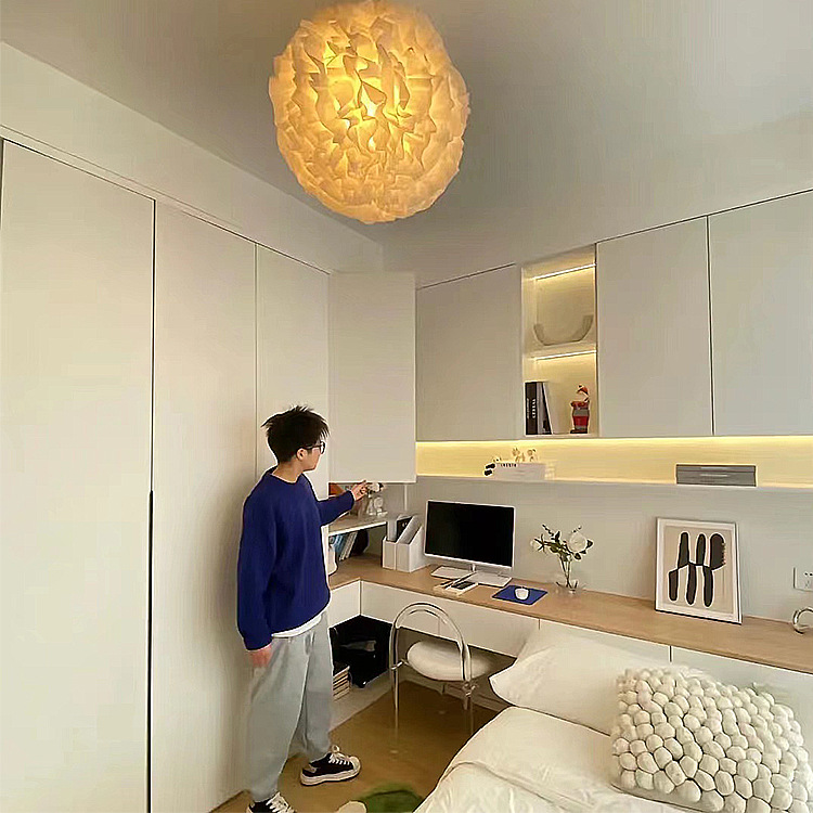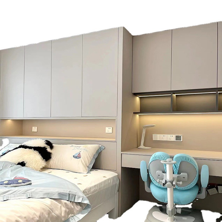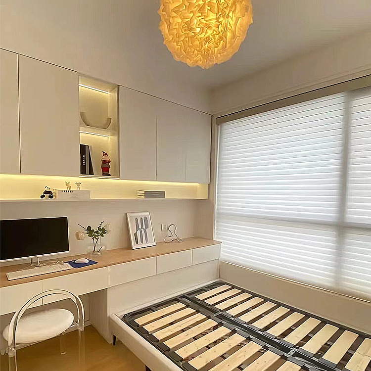 Изготовленная на заказ спальня в японском стиле с татами, кабинет, небольшая комната, кровать, шкаф, письменный стол, угловая кровать-татами.