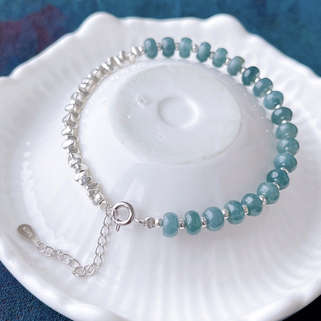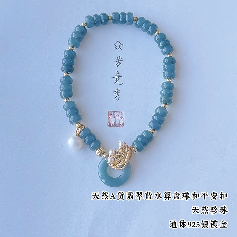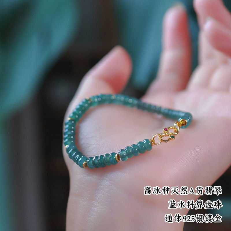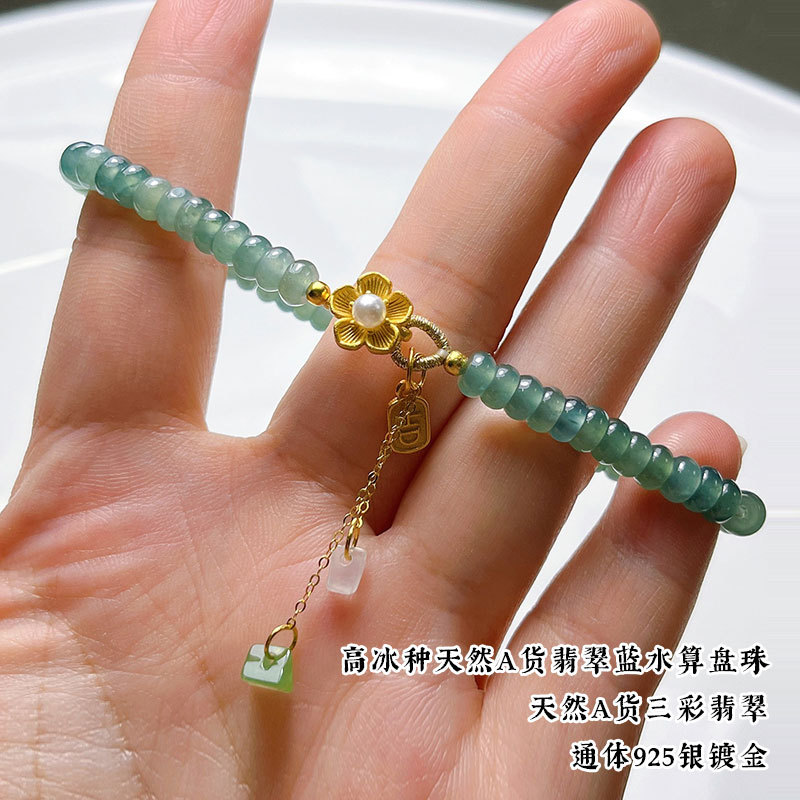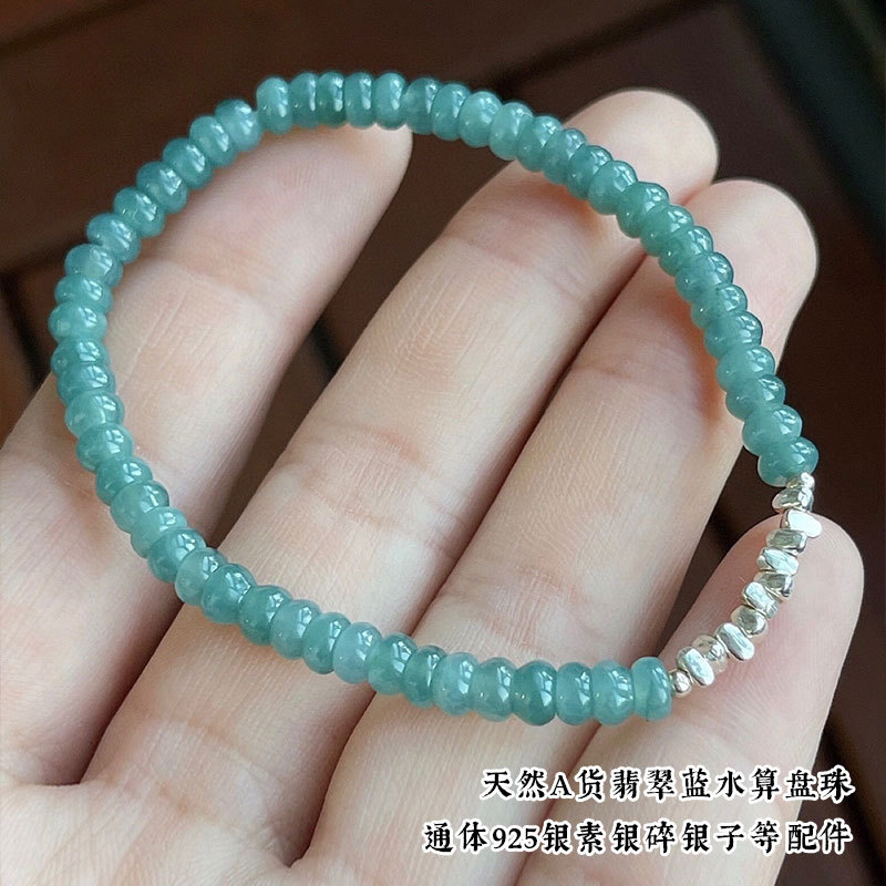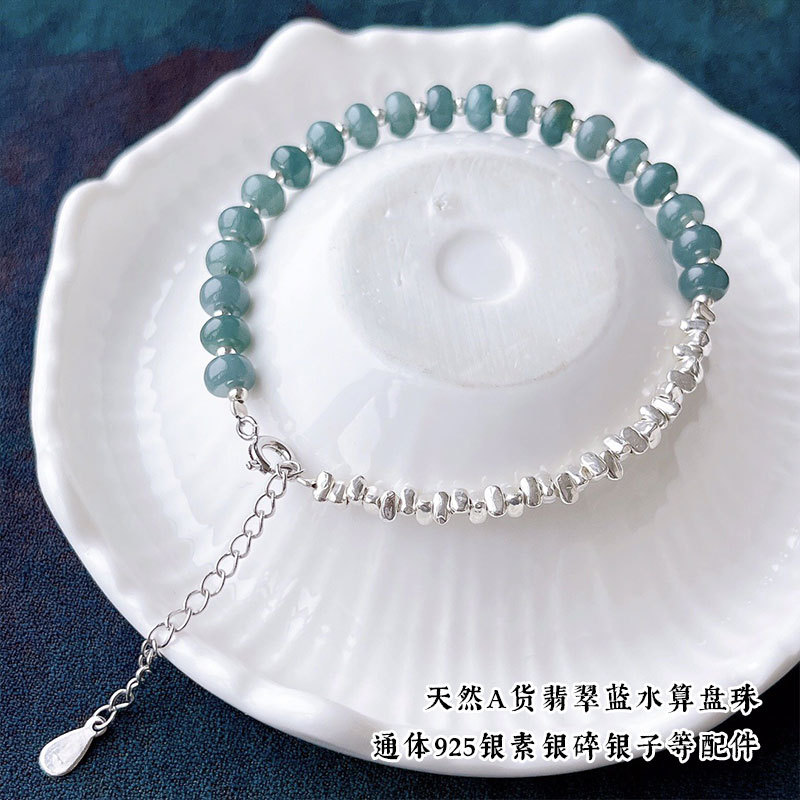 Натуральный нефритовый браслет класса А с бусинами в форме абакуса, синего цвета, высокого качества, с эффектом льда и стальным блеском, в комплекте с цельным серебряным браслетом 925 пробы в китайском стиле.