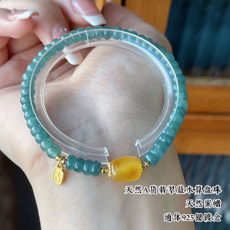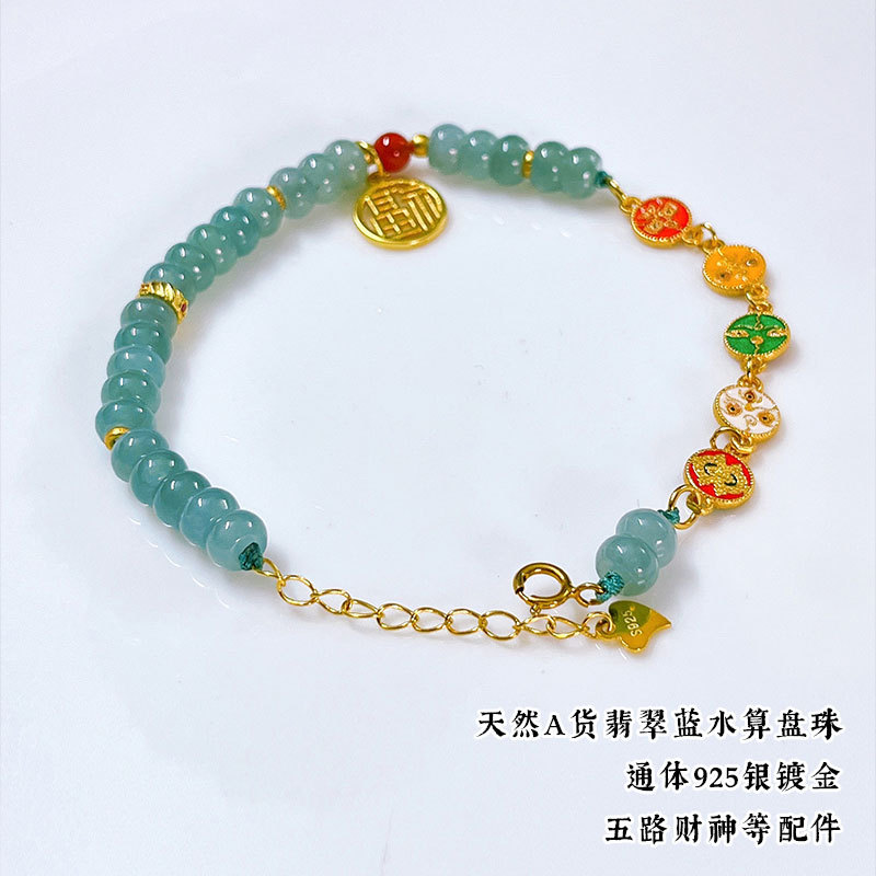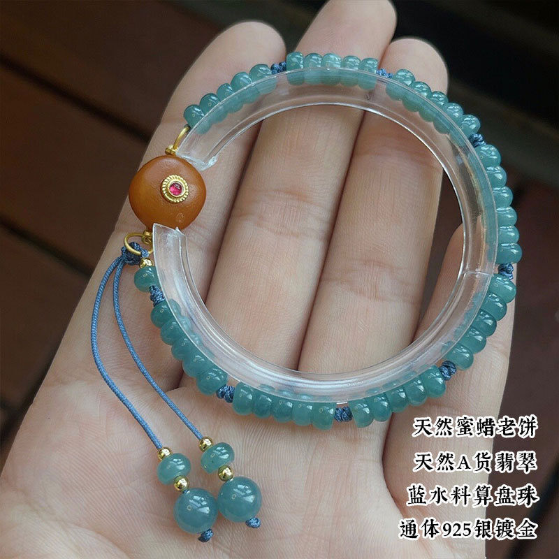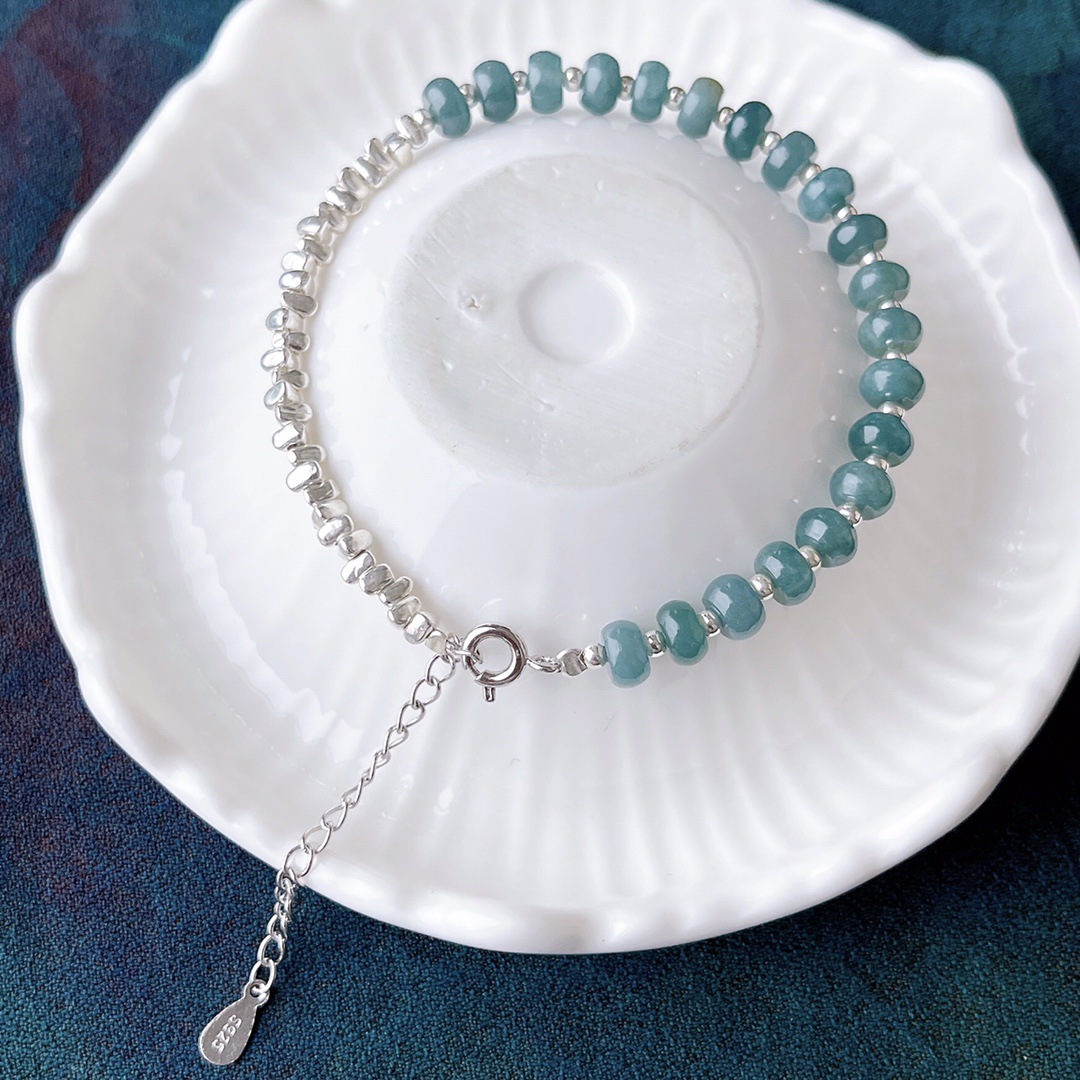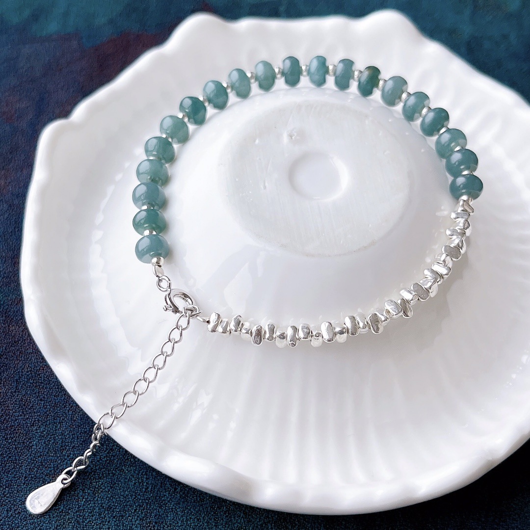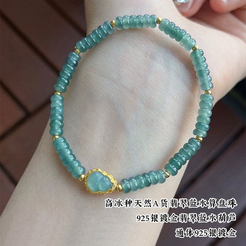 Натуральный нефритовый браслет класса А с бусинами в форме абакуса, синего цвета, высокого качества, с эффектом льда и стальным блеском, в комплекте с цельным серебряным браслетом 925 пробы в китайском стиле.