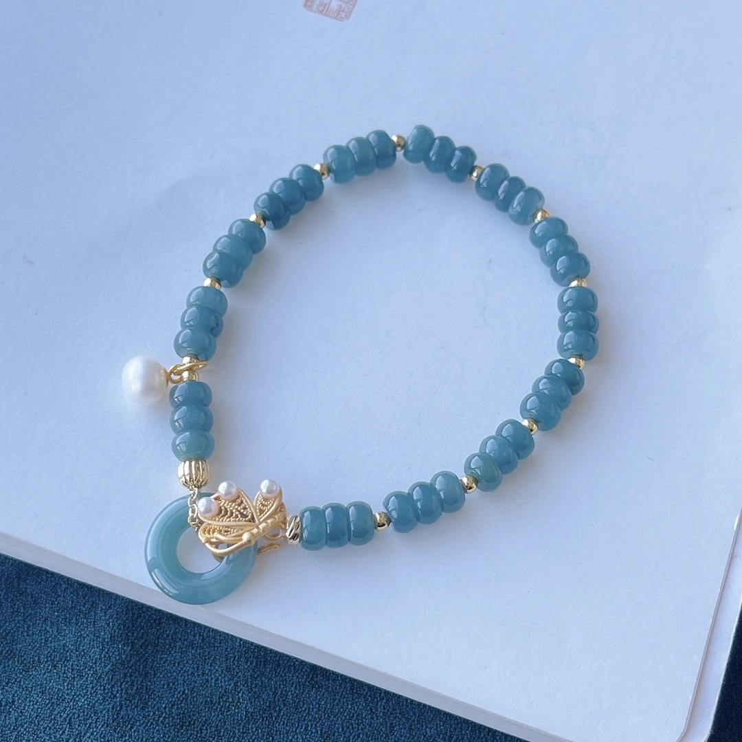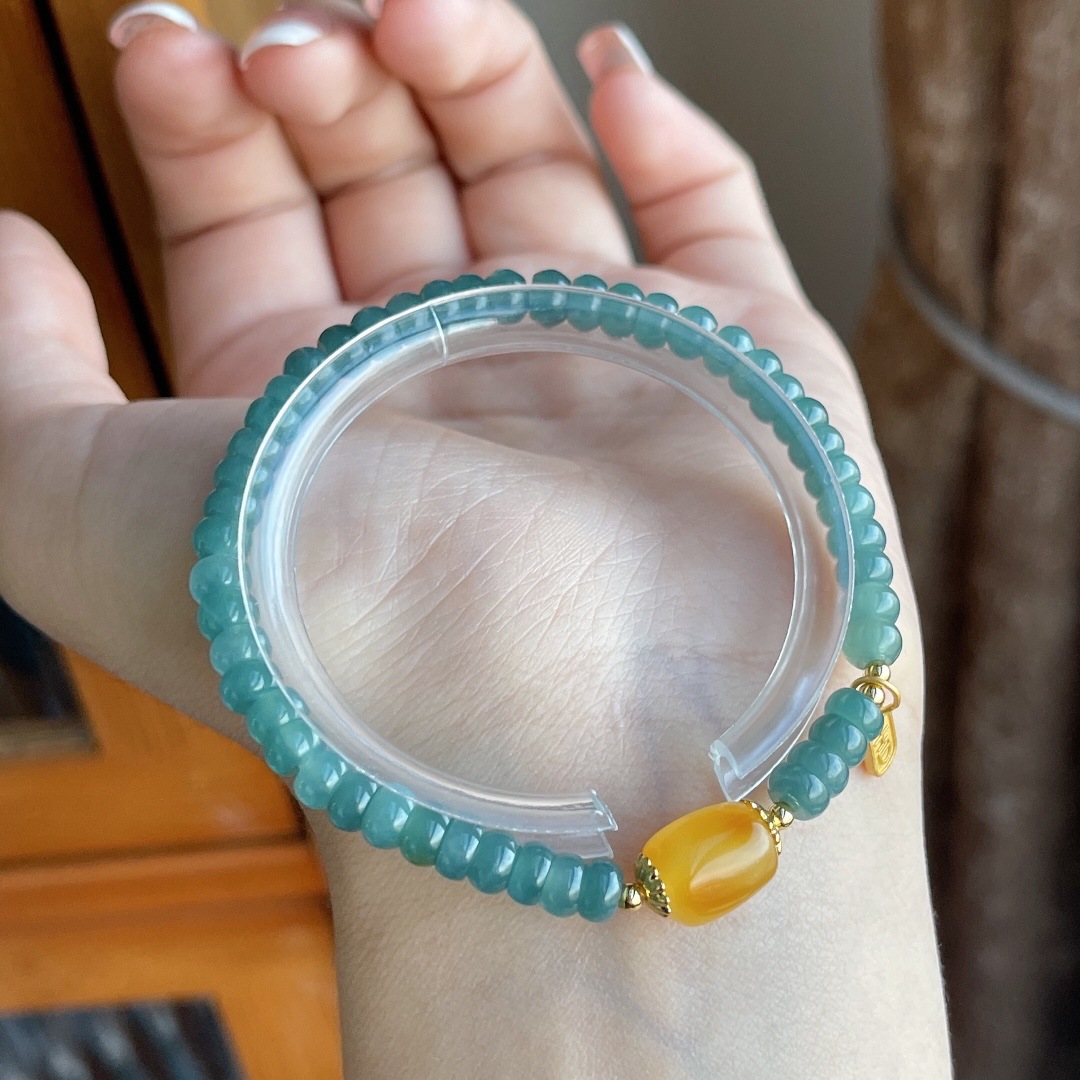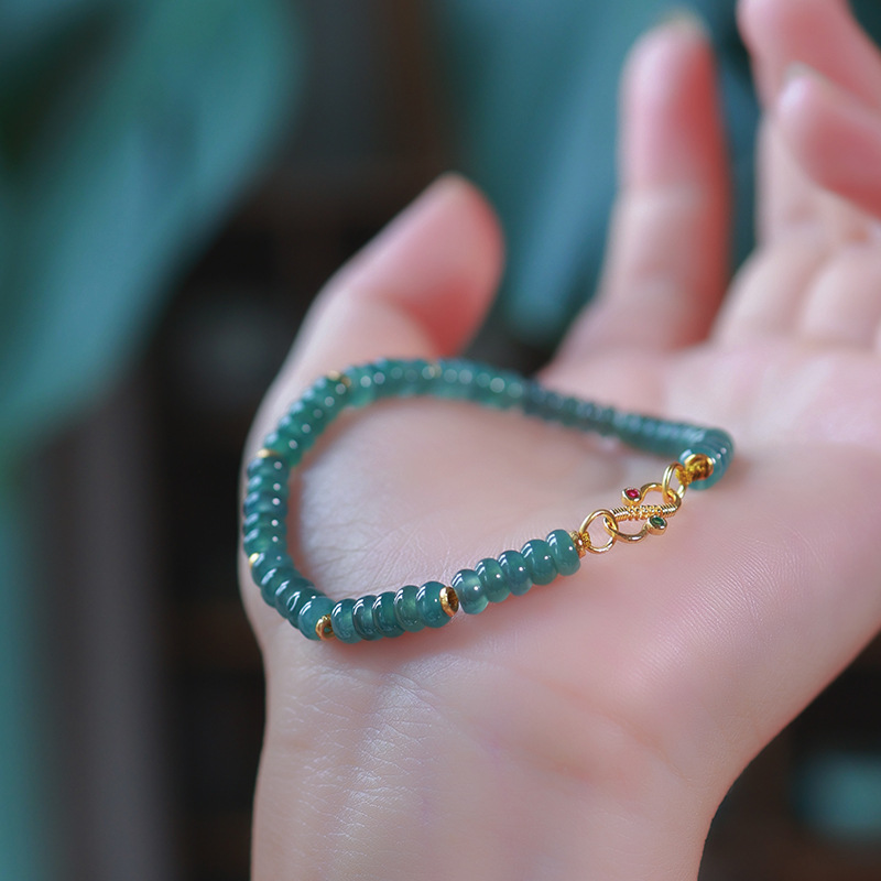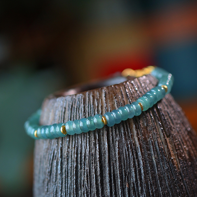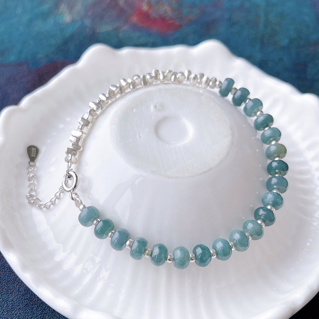 Натуральный нефритовый браслет класса А с бусинами в форме абакуса, синего цвета, высокого качества, с эффектом льда и стальным блеском, в комплекте с цельным серебряным браслетом 925 пробы в китайском стиле.