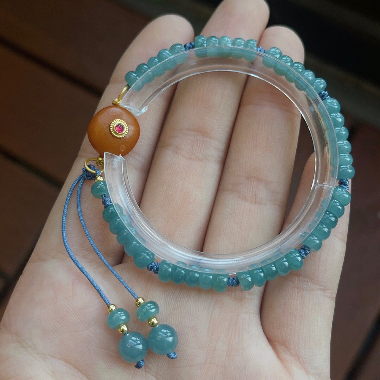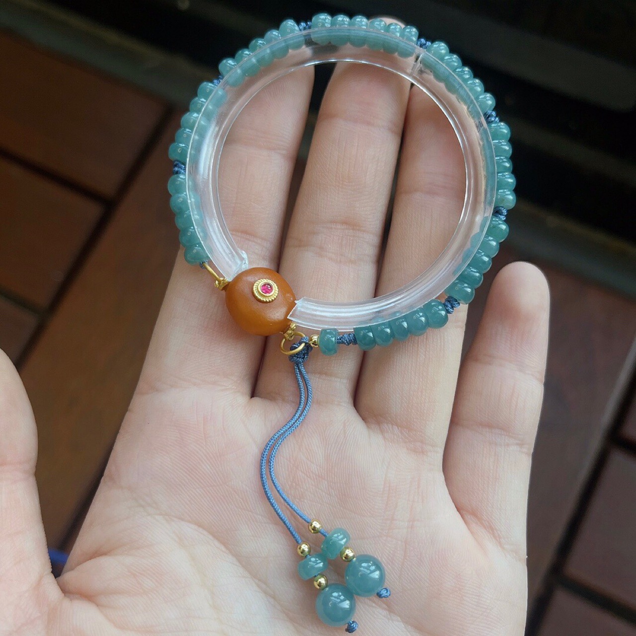 Браслет из бисера из изумрудно-голубой воды