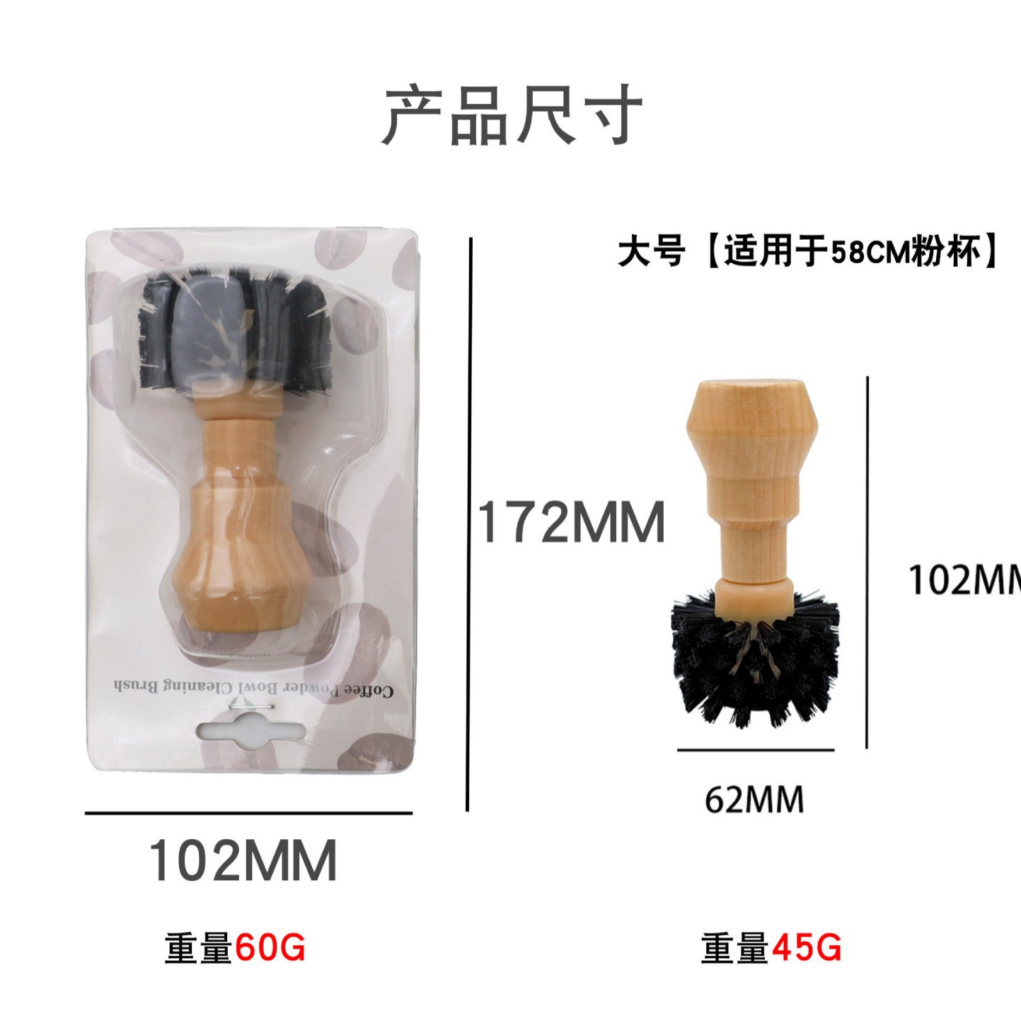 Маленький Размер кофейной пудры "Cup Brush" для 49-54 см]; Большая кофейная Пудра "Cup Brush" для 58 см]; Маленькая щетка для чашки кофейного порошка — [черная]; Большая щетка для чашки кофейного порошка — [черная]
