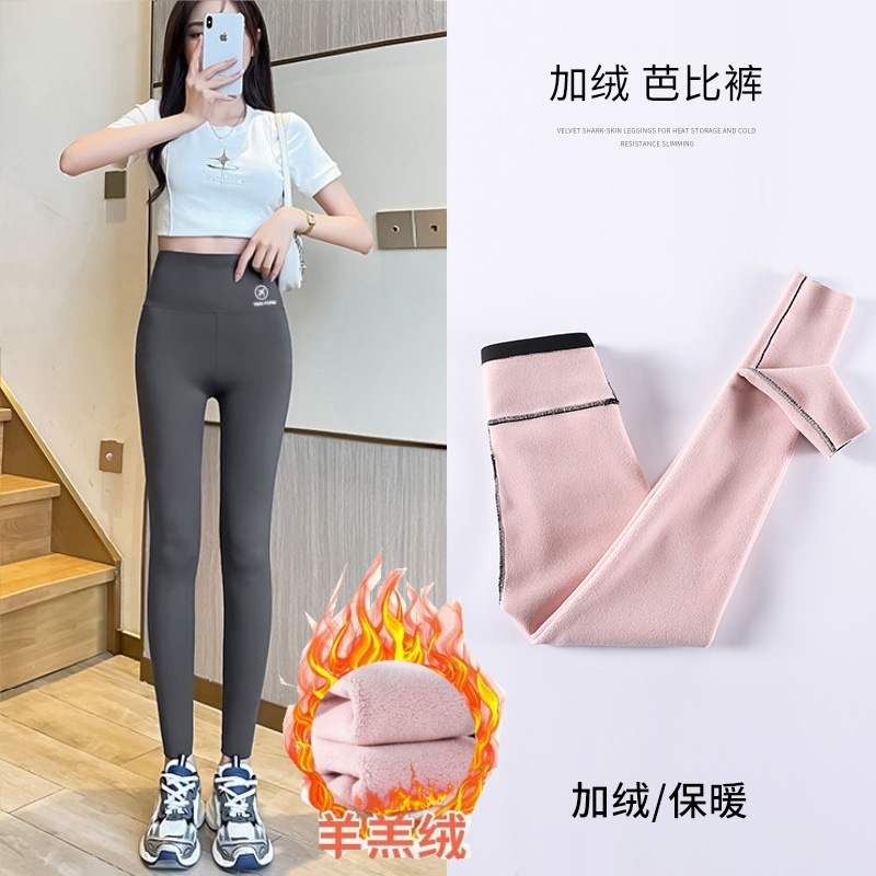 Зимние утолщенные брюки с акулой из овечьей шерсти, женская верхняя одежда с высокой талией, теплые узкие леггинсы с буквенной талией, брюки Барби