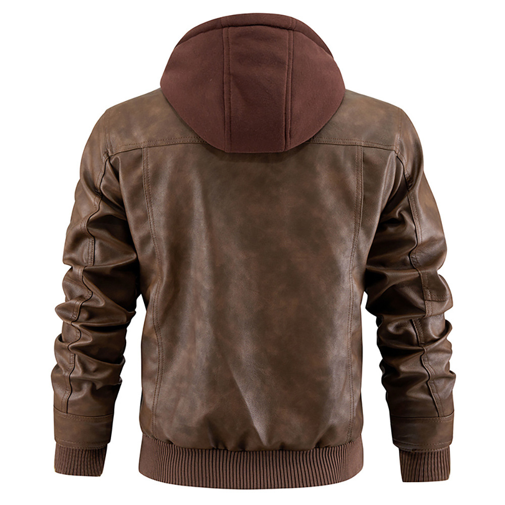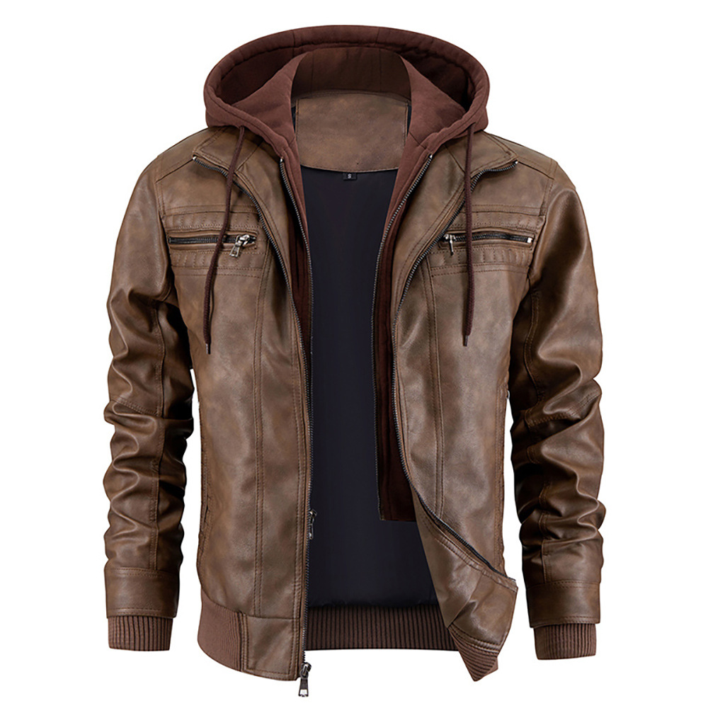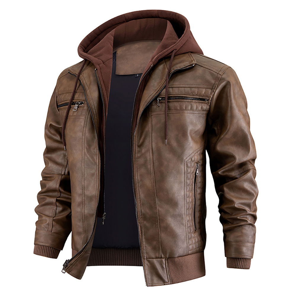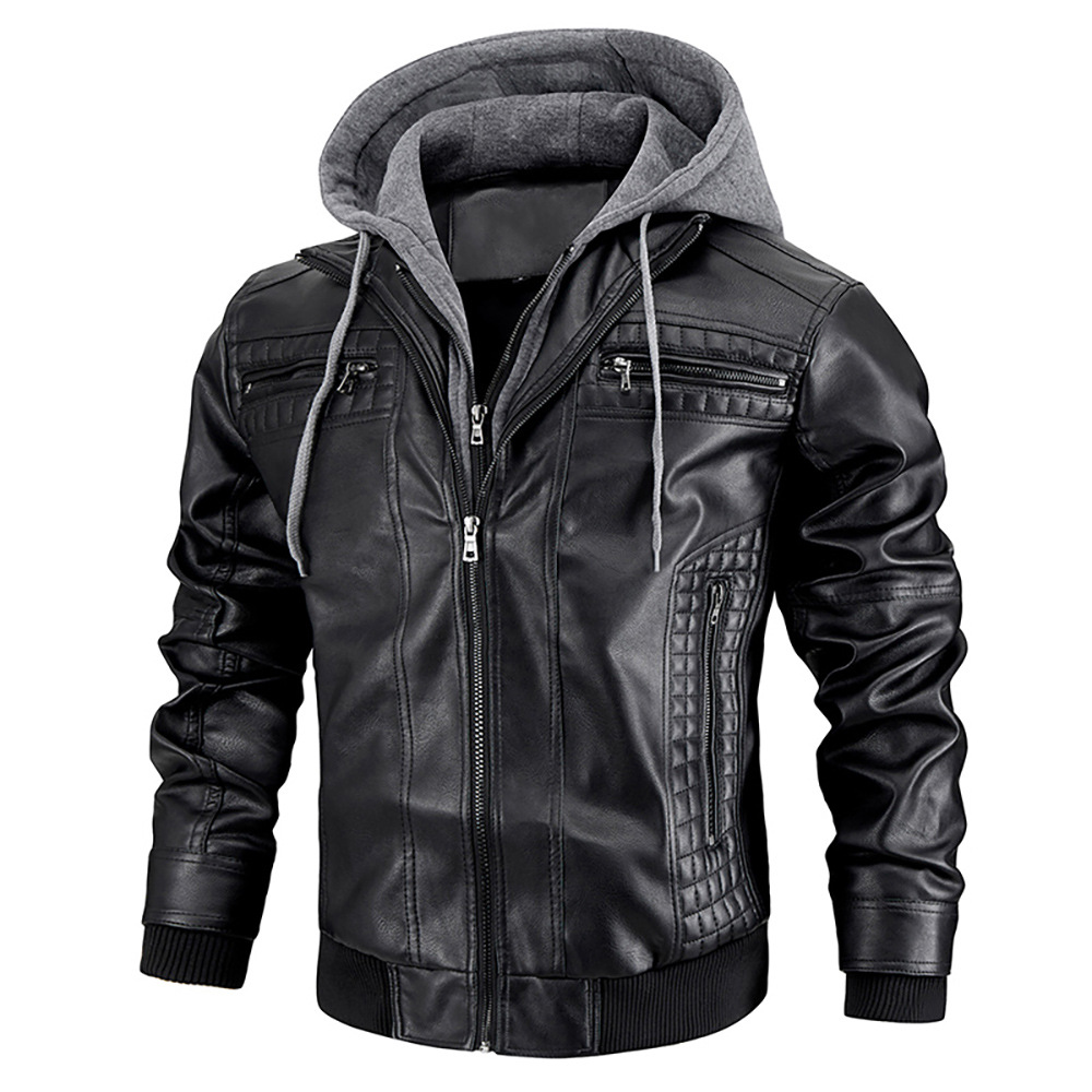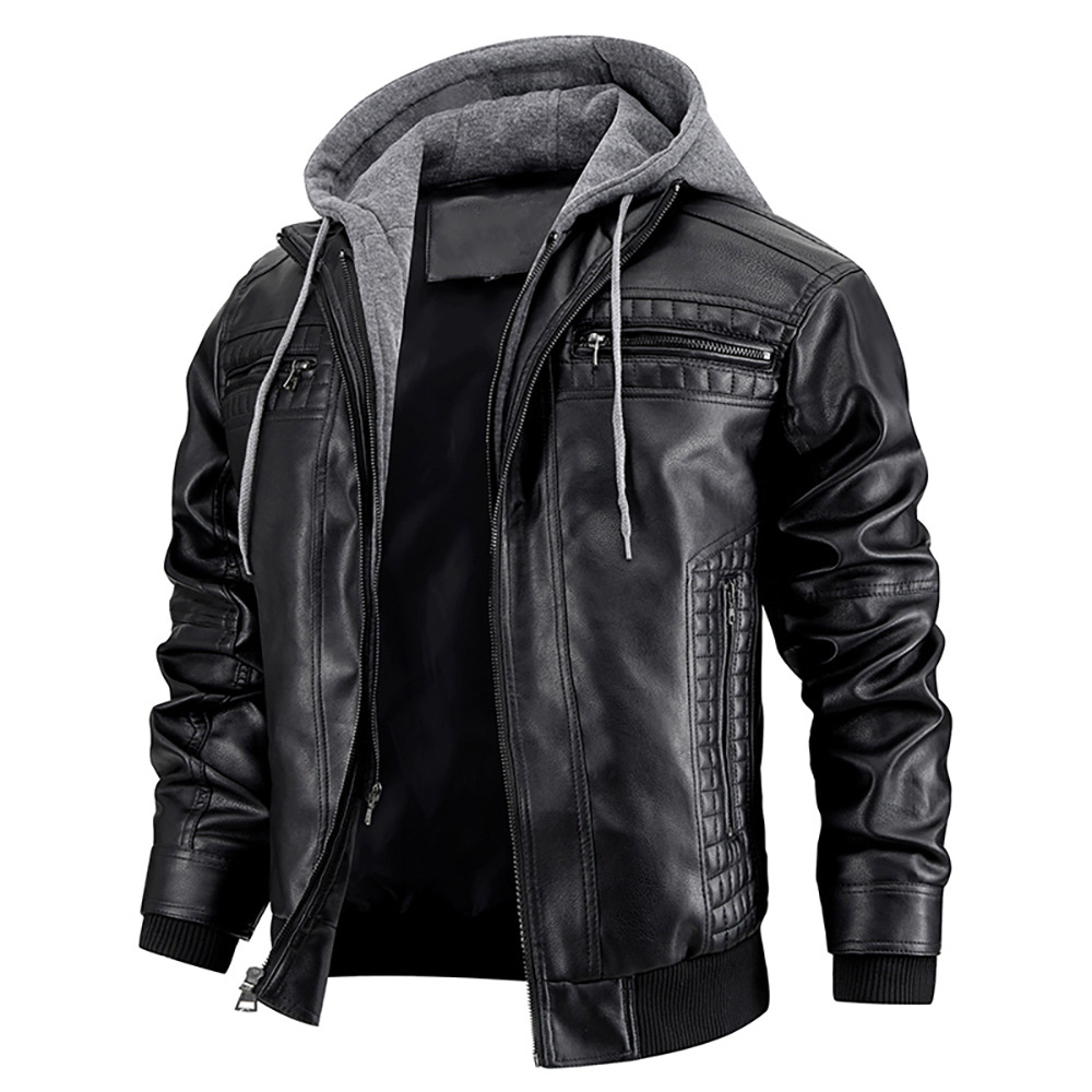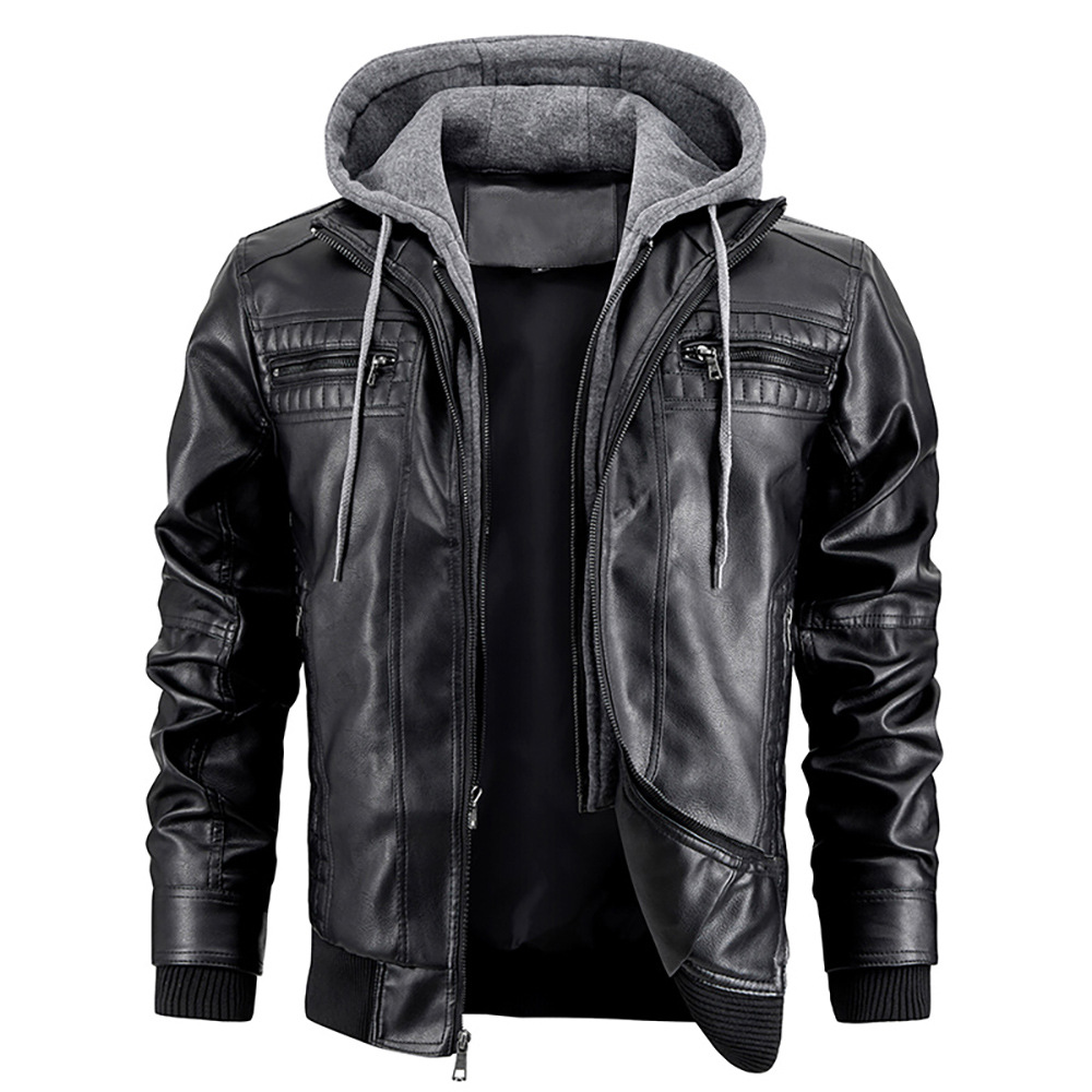 Европейская и американская трансграничная куртка из искусственной кожи с капюшоном Amazon независимая станция кожаное пальто мужское зимнее Новое теплое пальто европейского размера