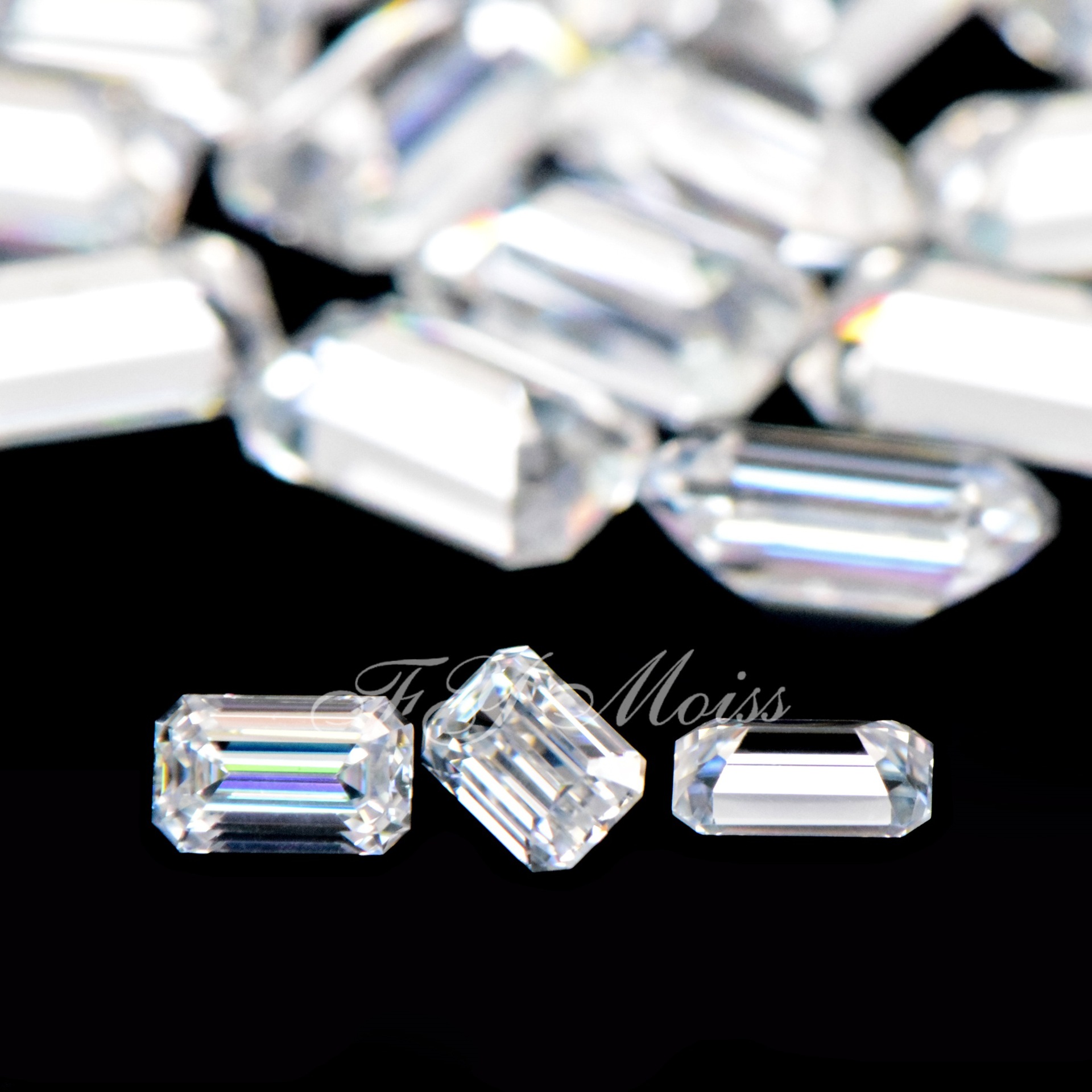Муассанит изумрудной огранки, малый размер 0.04-0.4 карата, цвет D-DE, производство фабрики Вучжоу, с сертификатом, огранка «пояс»