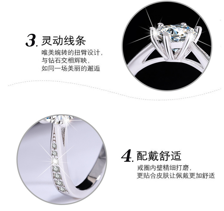 S925 стерлингового серебра Мозамбик корейская версия кольца с шестью когтями дамы кольцо с шестью клешнями классический корона обручальное кольцо оптовая продажа