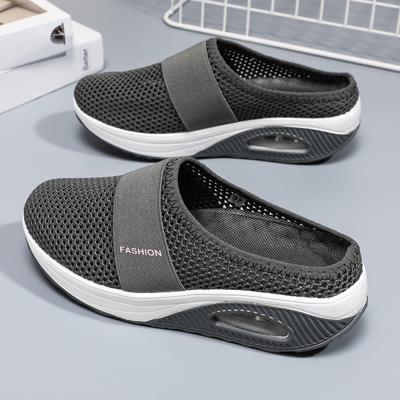 2023 новые летние кроссовки без каблуков, женская обувь-качалка без каблука, Легкая сетчатая обувь на толстой подошве, дышащая женская обувь с половинным сопротивлением