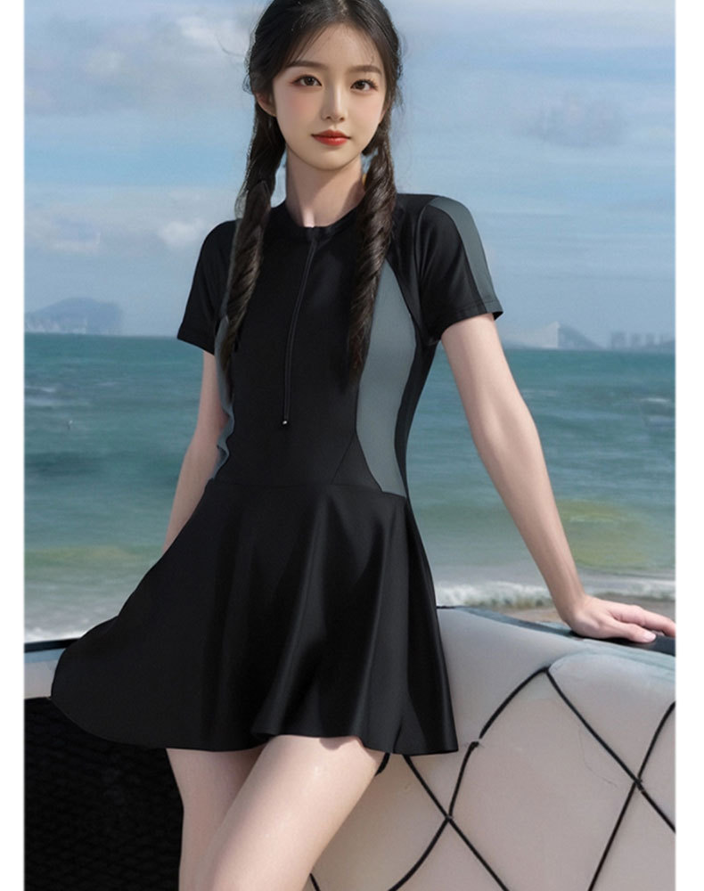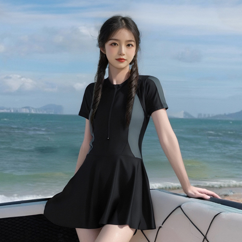 Цельный купальник, женская летняя юбка, консервативный спортивный стиль, покрывающий живот, стройнящий студент, сладкий купальник с свежей горячей весной