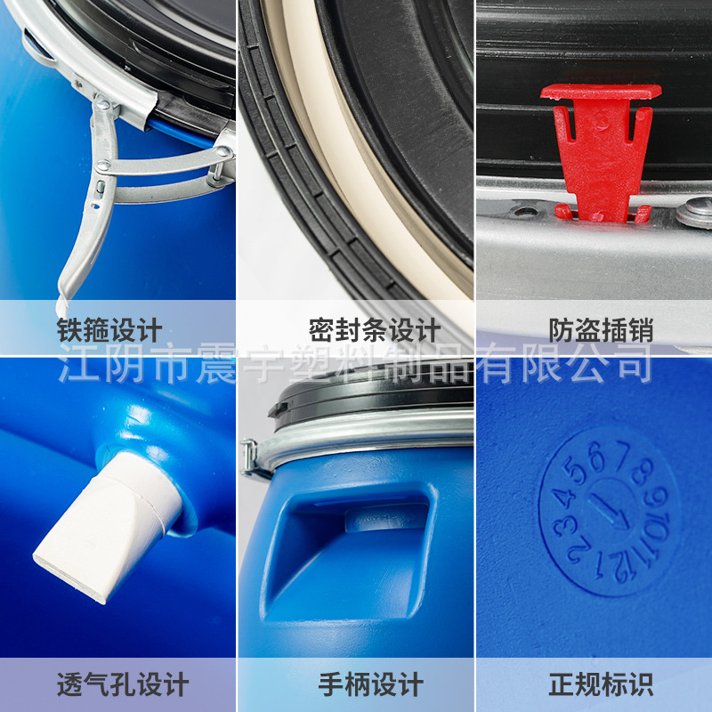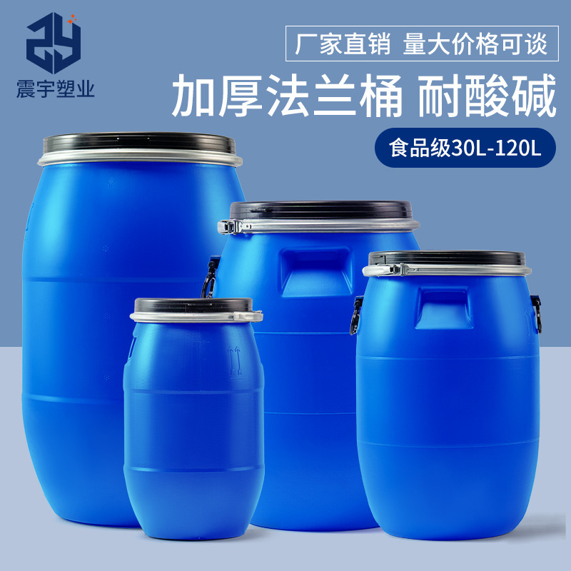 Утолщенная большая пластиковая бочка, круглая пластиковая бочка, 120-литровая бочка с фланцем, пищевая пластиковая бочка, пластиковая упаковочная бочка с крышкой.