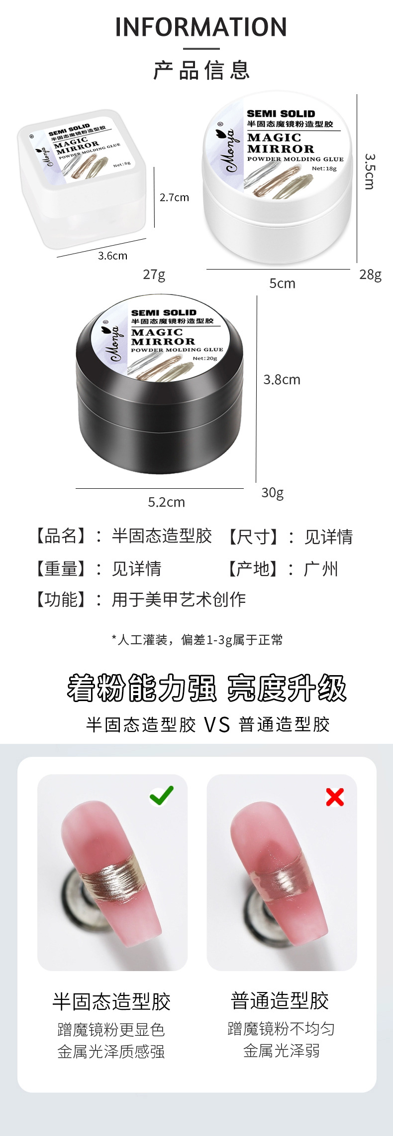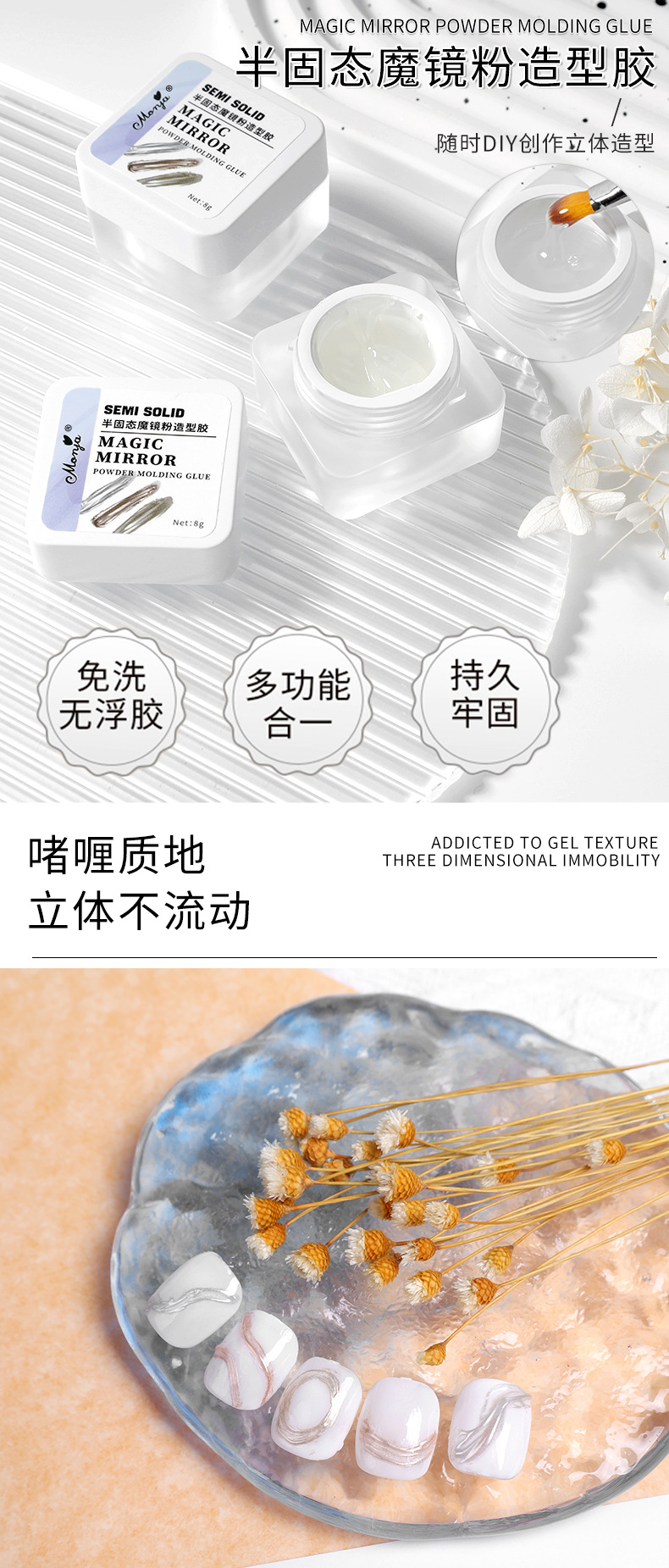 Полутвердый магический зеркальный порошок твердый клей (8g); Полутвердый магический зеркальный порошок твердый клей (18g); Полутвердый магический зеркальный порошок твердый клей (20g)