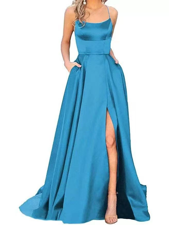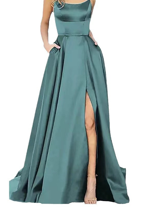 Amazon 2025 года, новое трансграничное платье для подружки невесты в Европе и Америке, длинная юбка, маленький хвост, подтяжки, чистое цветное банкетное вечернее платье