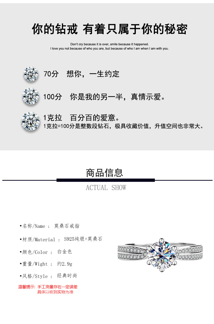 S925 Серебряное кольцо с муассанитом Starlight Queen Кольцо для свадебного предложения Кольцо из стерлингового серебра с шестью зубцами и бриллиантами Женское заводское блестящее.