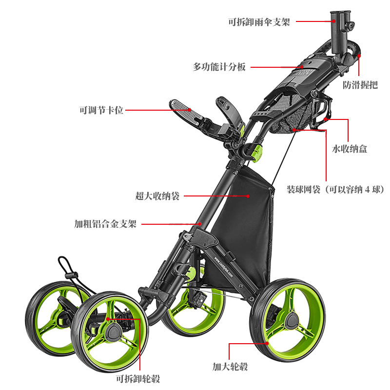 Тележка для гольфа IncontroSports Caddytek V8 с четырьмя колесами, складная, красная модель