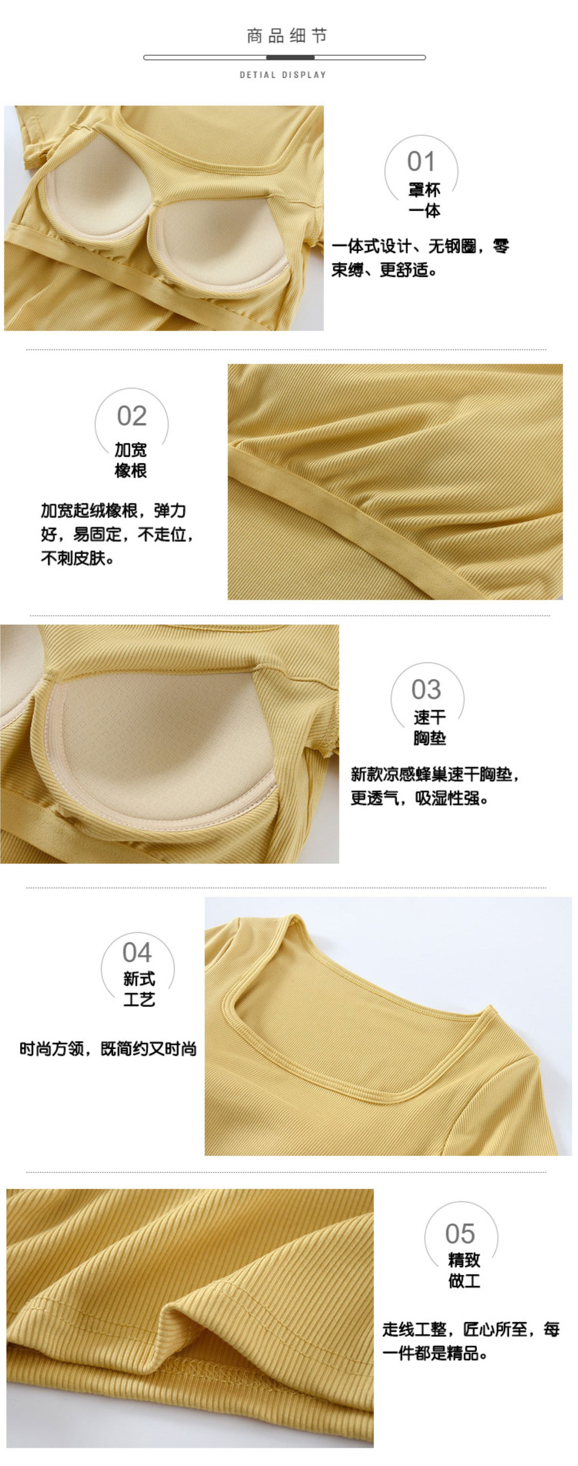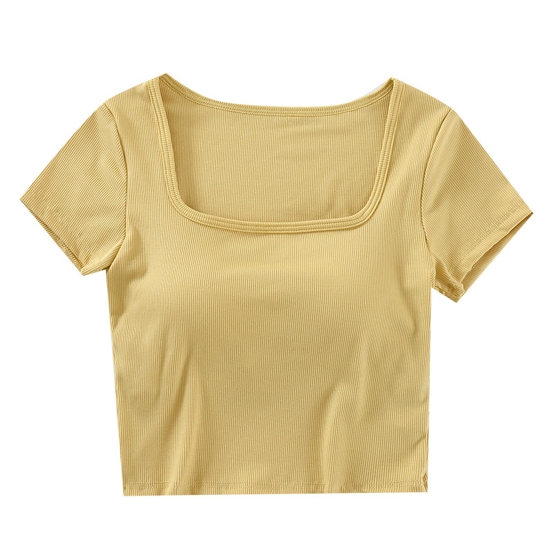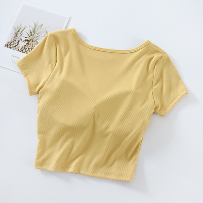 Цельная Базовая рубашка для чашек с квадратным воротником и короткими рукавами на груди с нагрудной подкладкой, Летняя короткая повседневная спортивная женская футболка с внутренней стороны