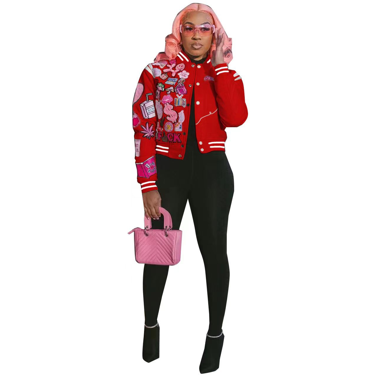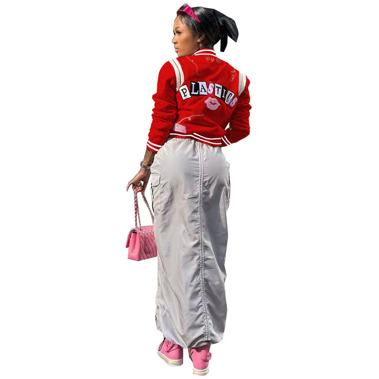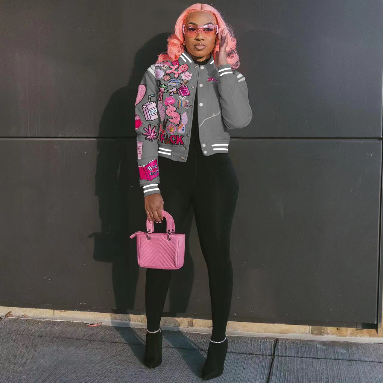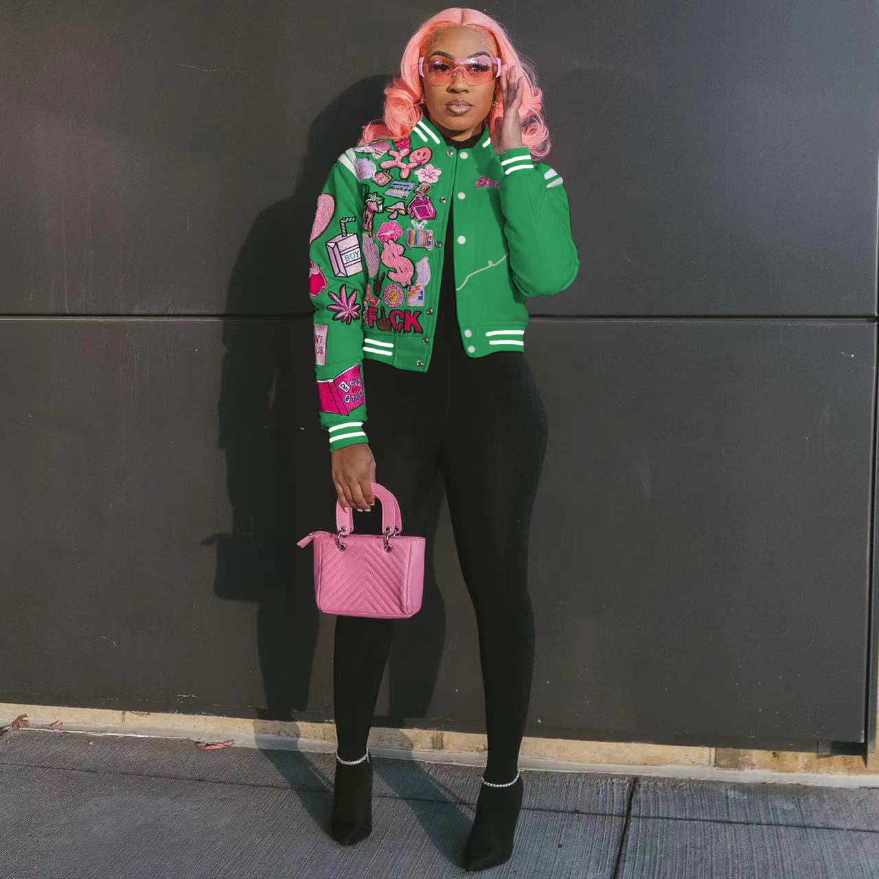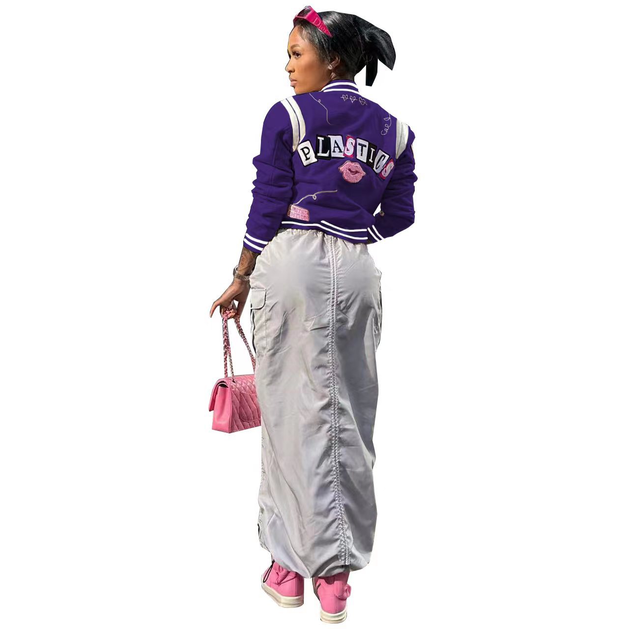 WB9126 Европейская и американская женская одежда, модный принт, весна и осень, полосатая бейсбольная форма, модные и повседневные модные бренды.