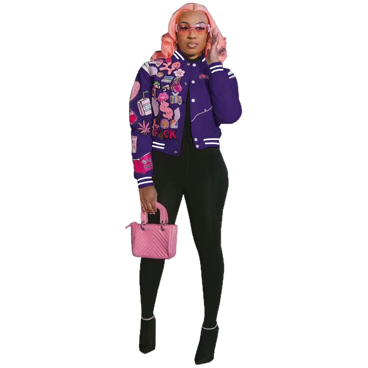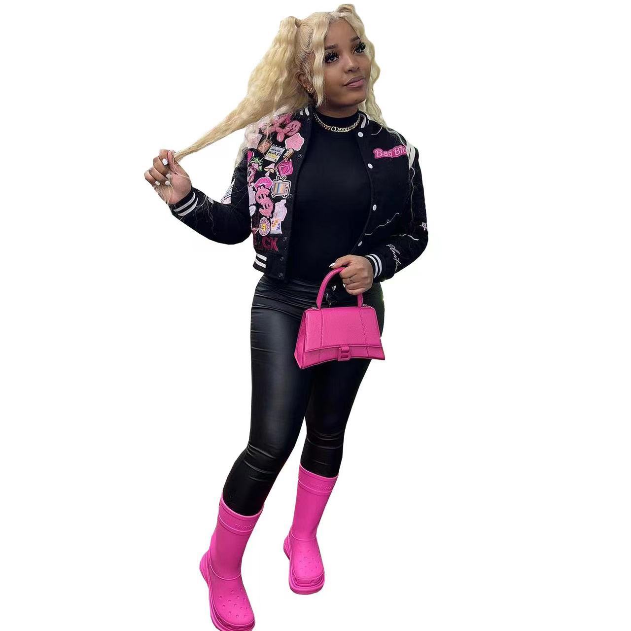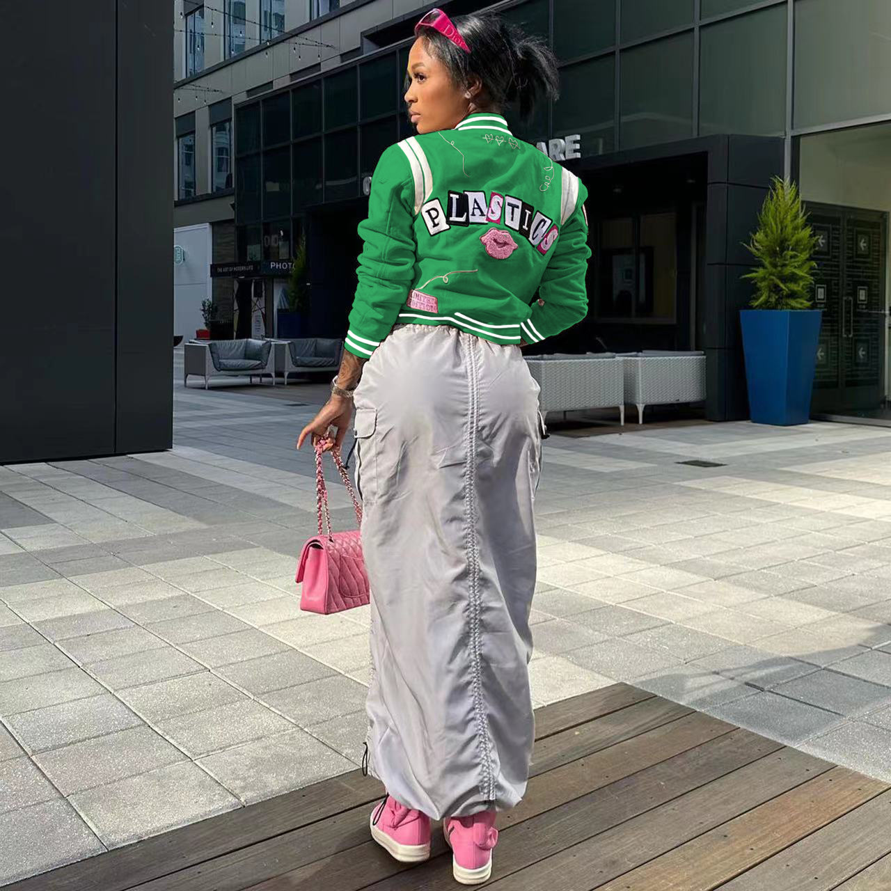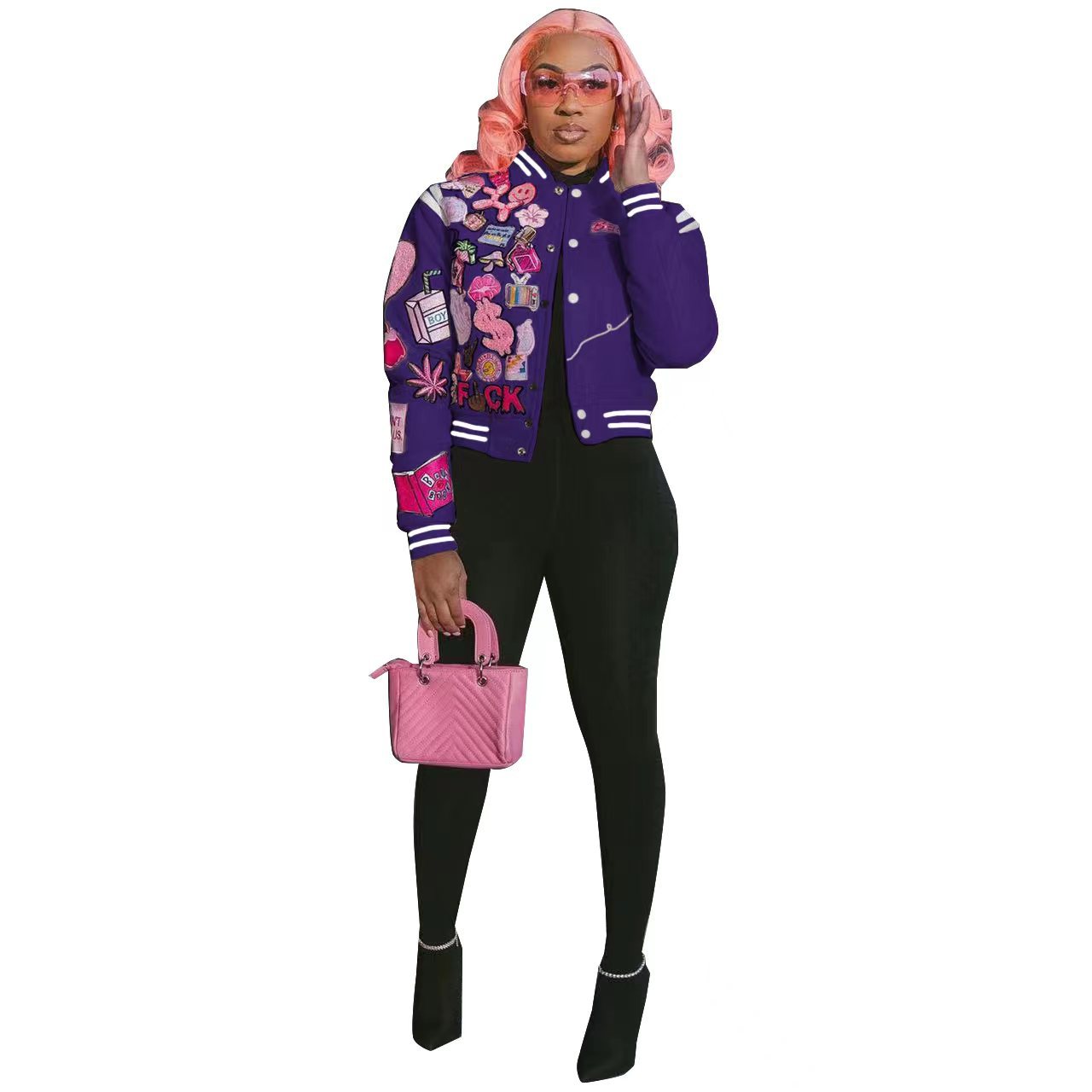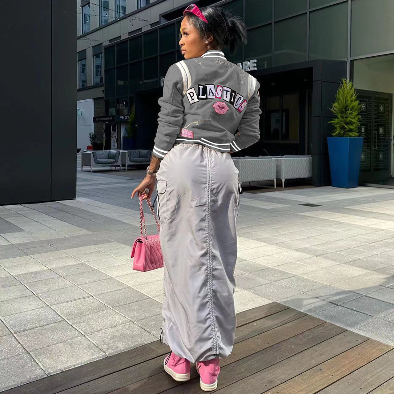 WB9126 Европейская и американская женская одежда, модный принт, весна и осень, полосатая бейсбольная форма, модные и повседневные модные бренды.