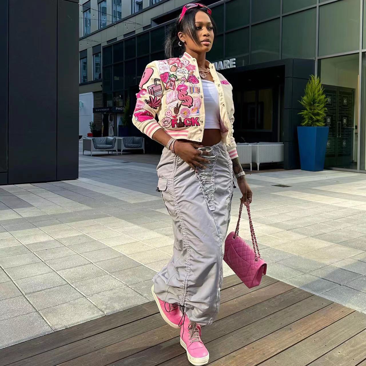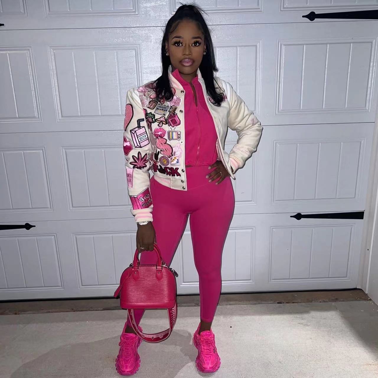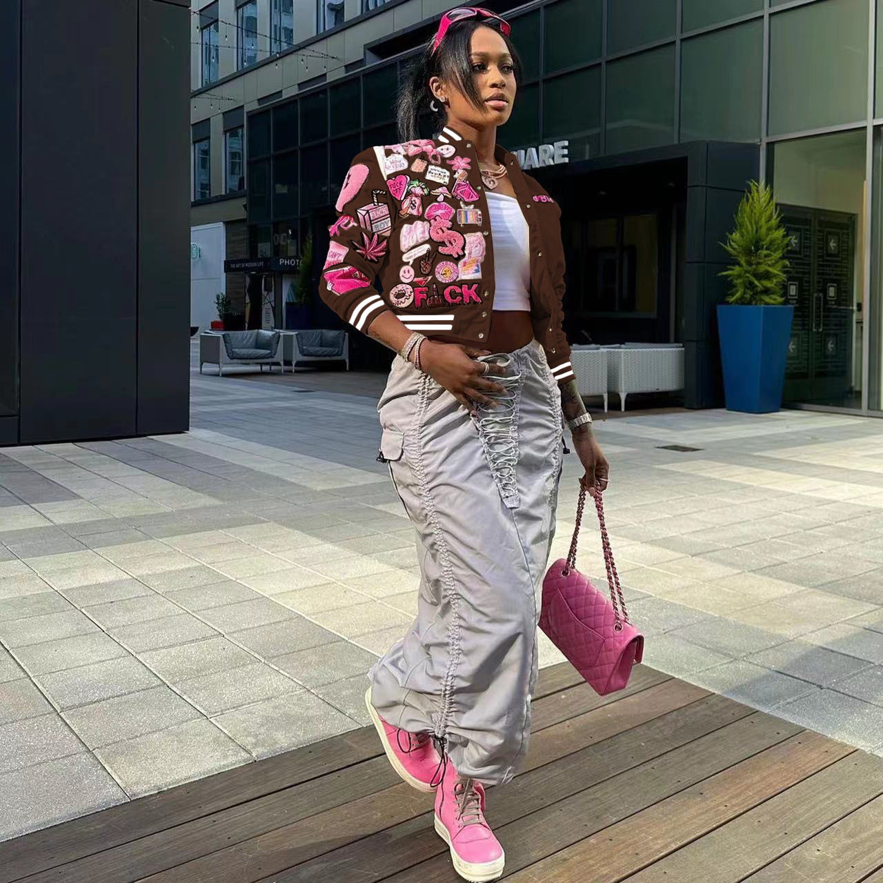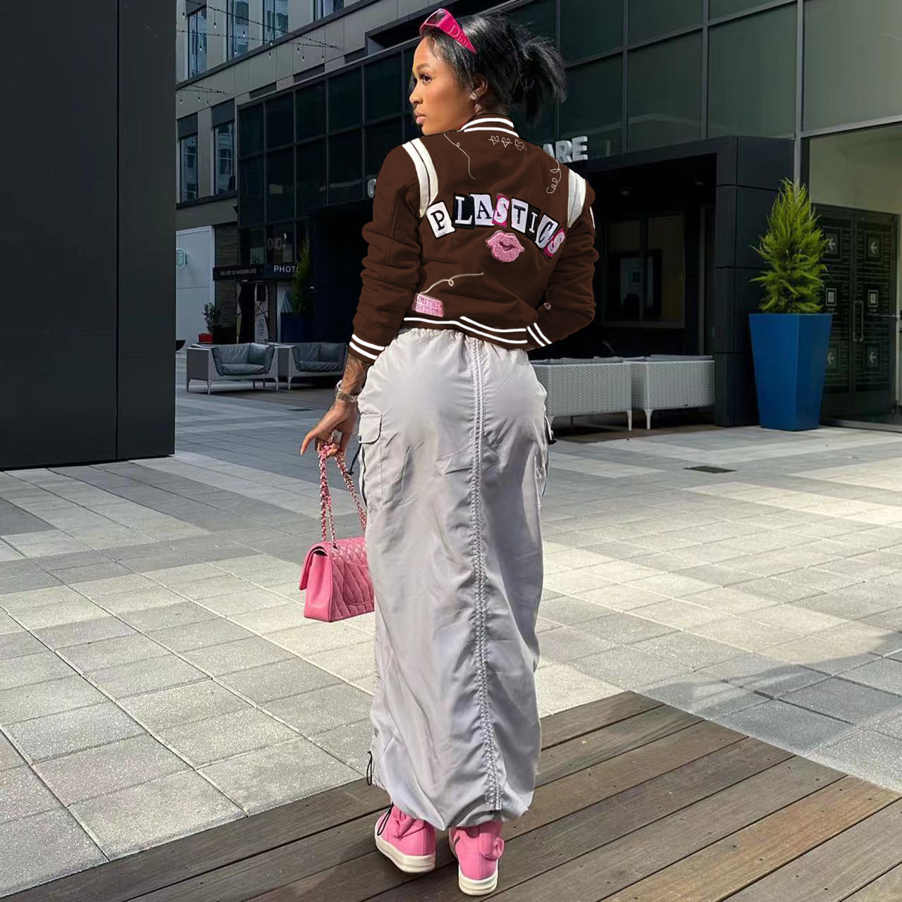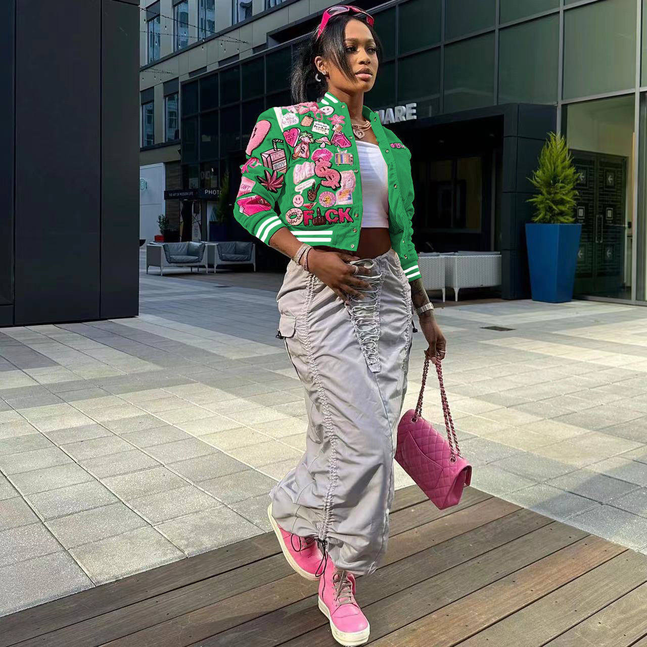 WB9126 Европейская и американская женская одежда, модный принт, весна и осень, полосатая бейсбольная форма, модные и повседневные модные бренды.
