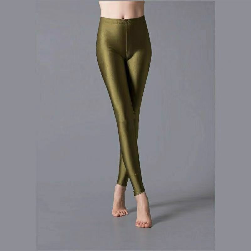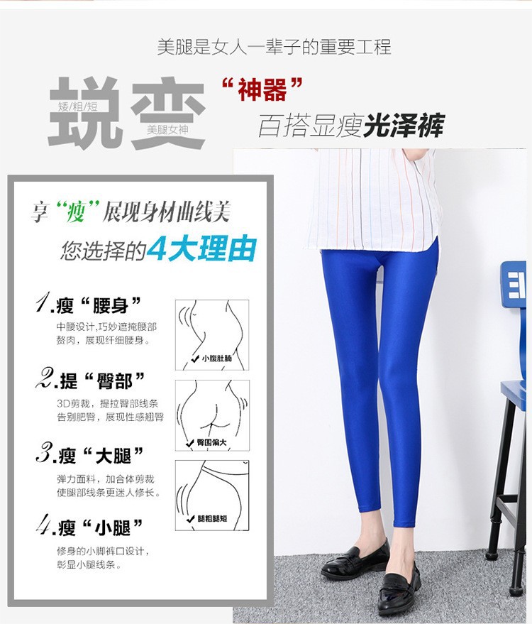 Укороченные брюки Весенние глянцевые повседневные эластичные брюки для йоги с высокой талией Верхняя одежда Узкие укороченные Леггинсы ярких цветов для женщин