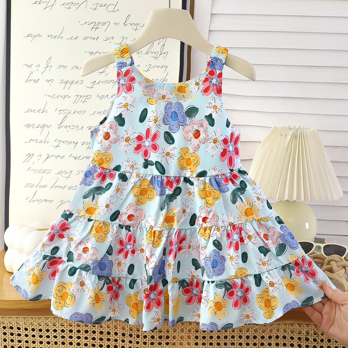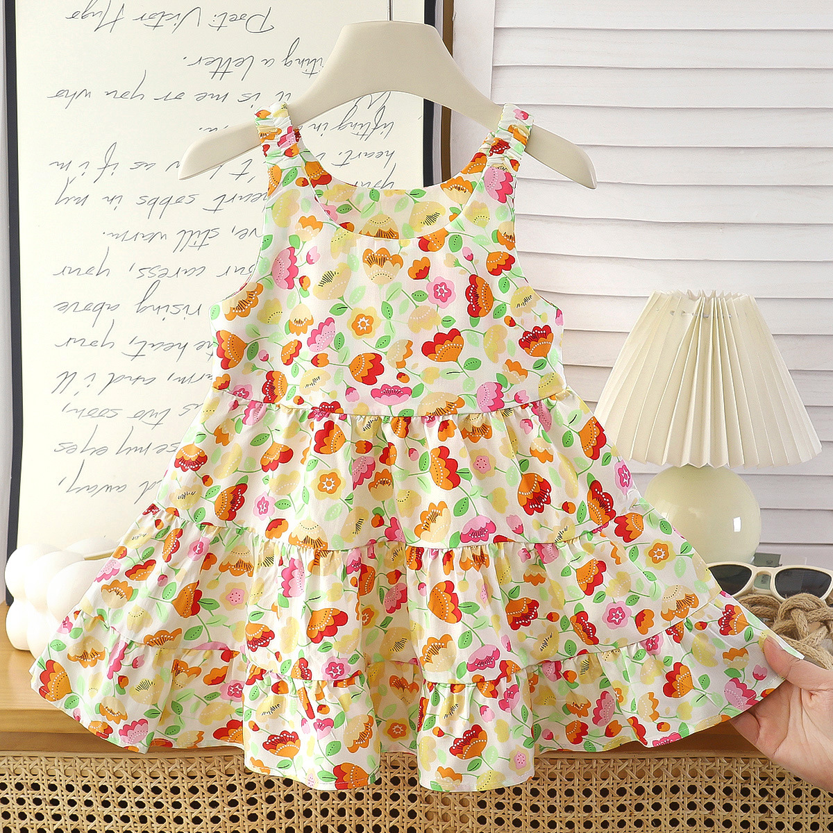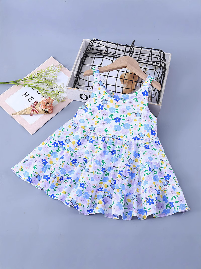 Новое летнее хлопковое шелковое платье для девочек, модное платье принцессы с цветочным принтом, детская тонкая юбка, оптовая продажа