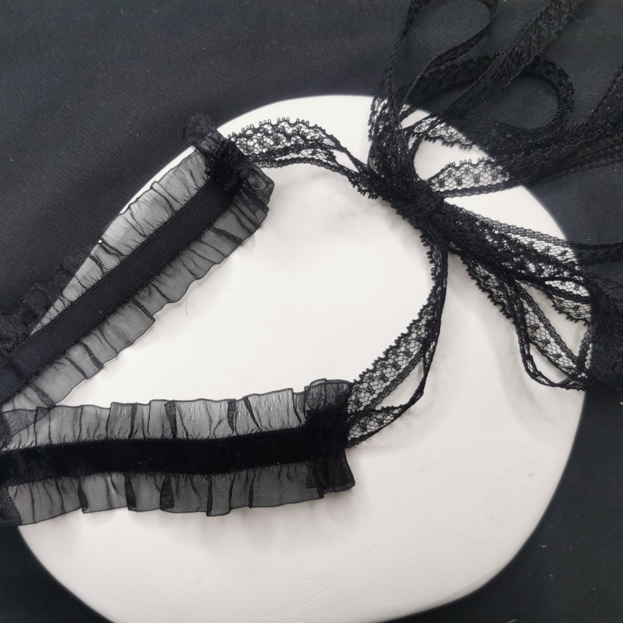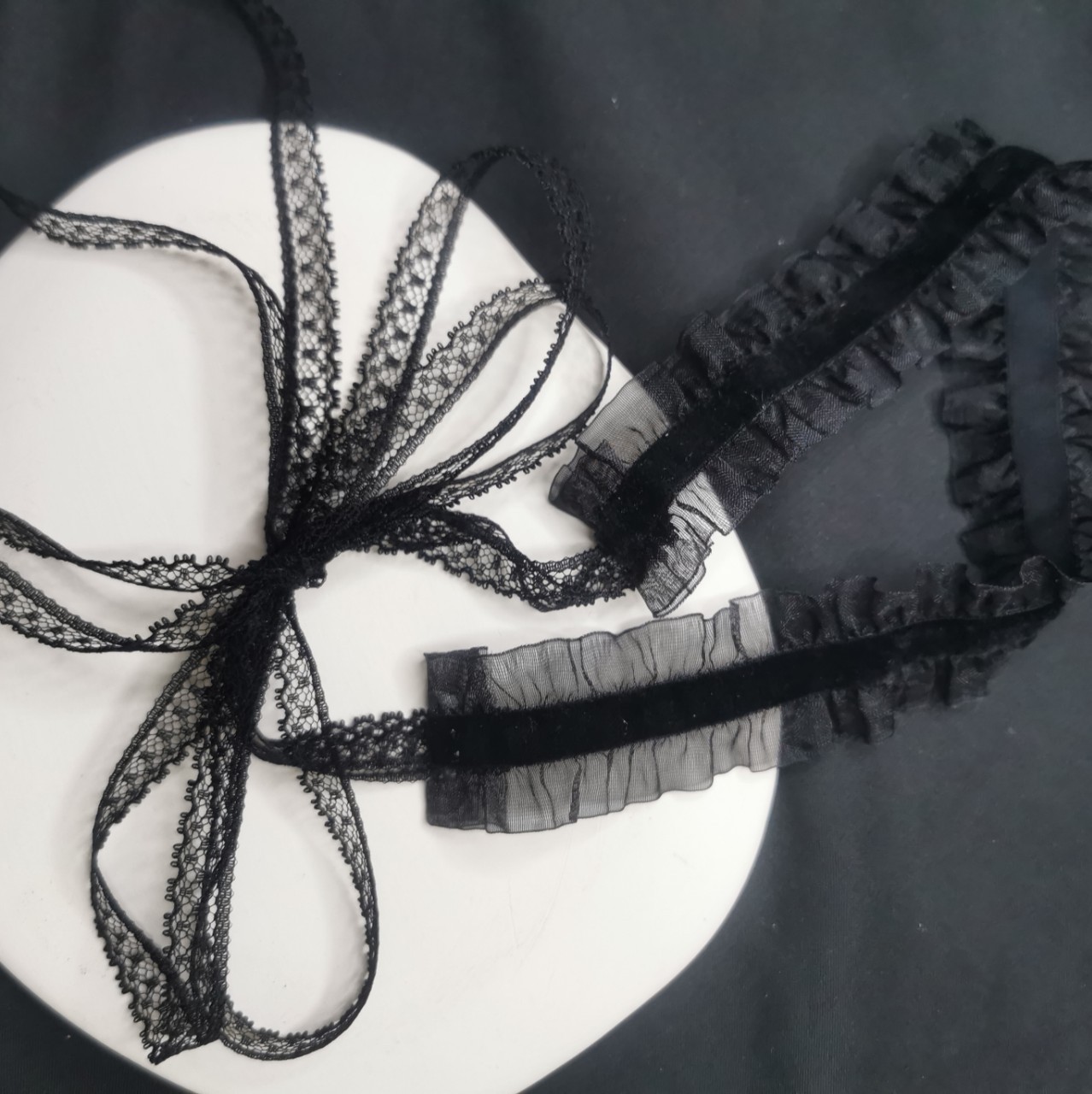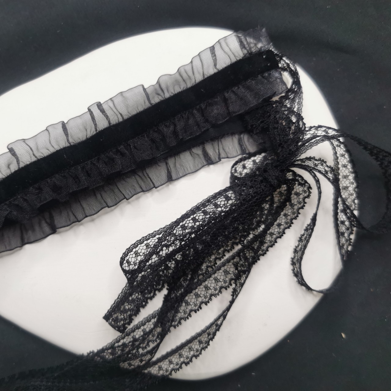 Sweet Girl Heart Кружевное бархатное колье без пряжек на шнуровке Бант на шее Ремешок на ключицу Цепочка для воротника Черно-белая
