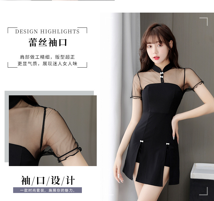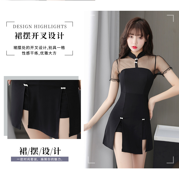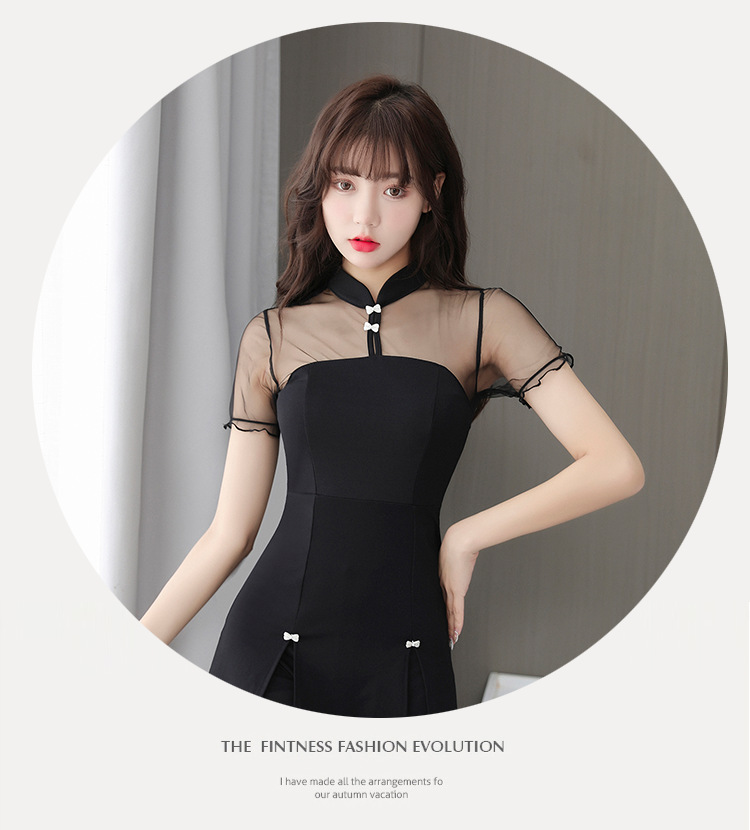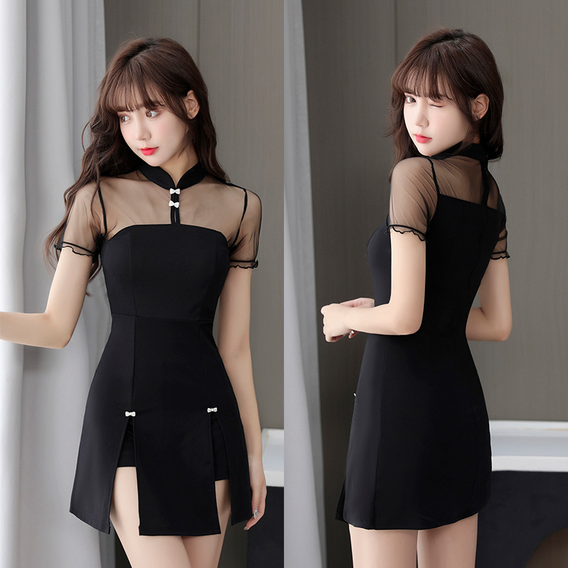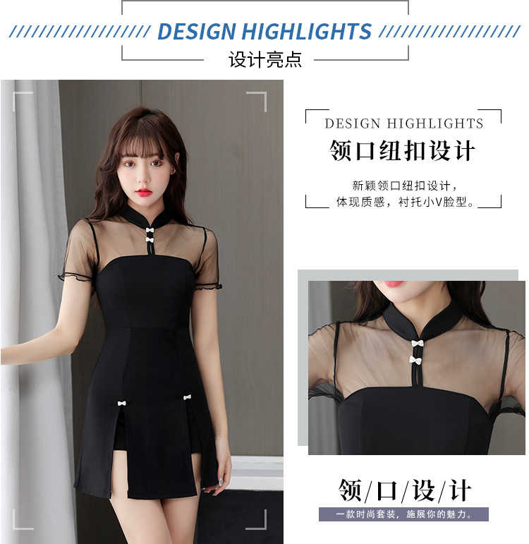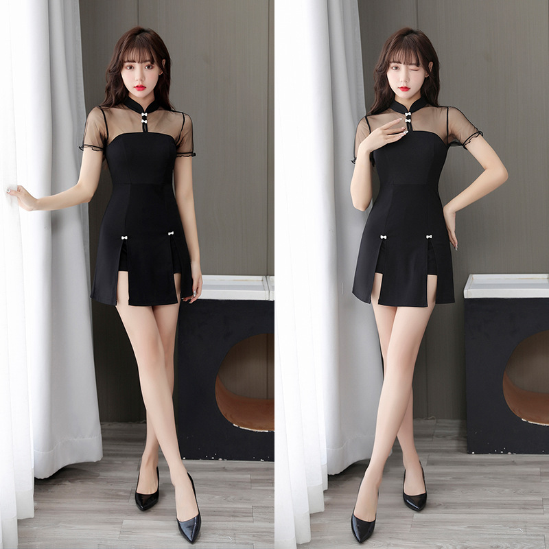 Костюм стримерши: платье-ципао с вырезами, модифицированная версия, униформа для работника баня, комплект 799, модифицированное ципао
