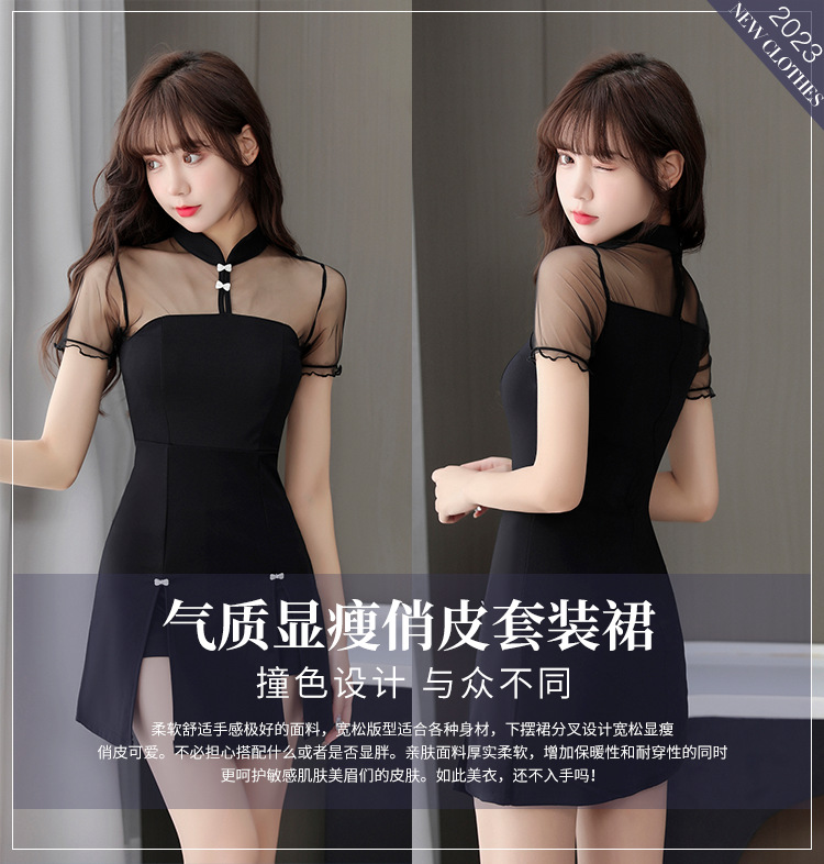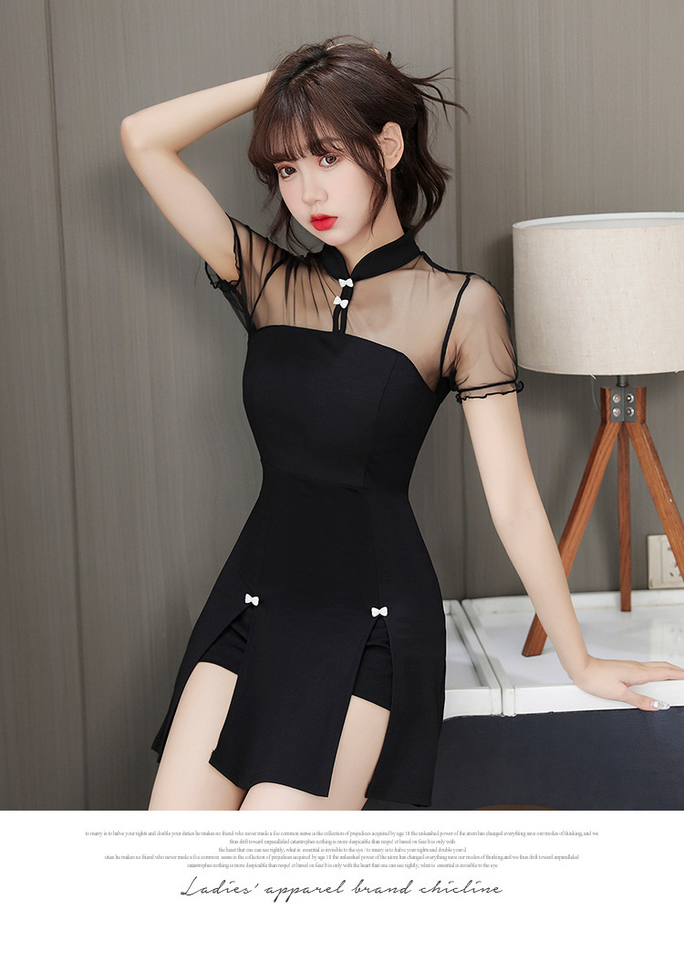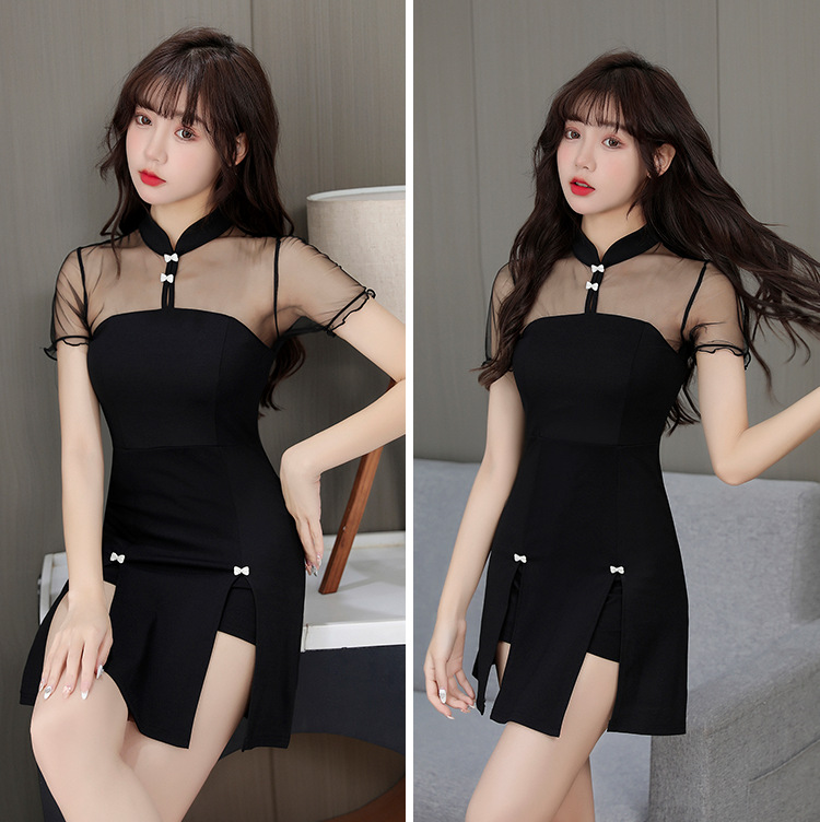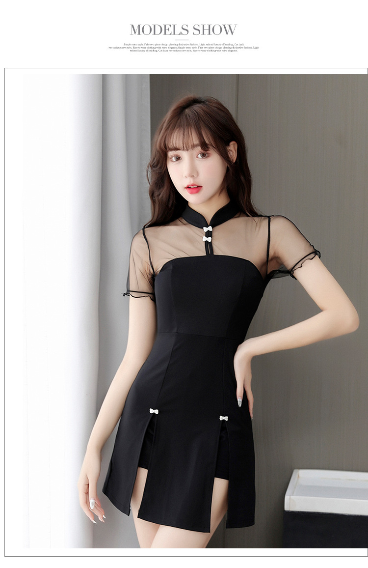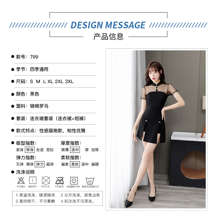 Костюм стримерши: платье-ципао с вырезами, модифицированная версия, униформа для работника баня, комплект 799, модифицированное ципао