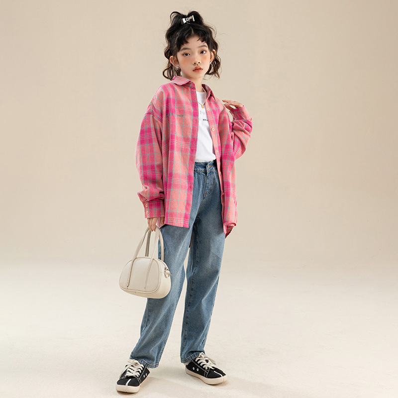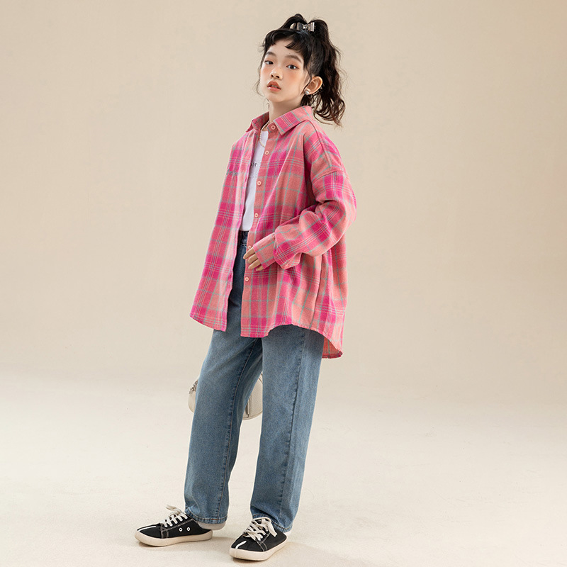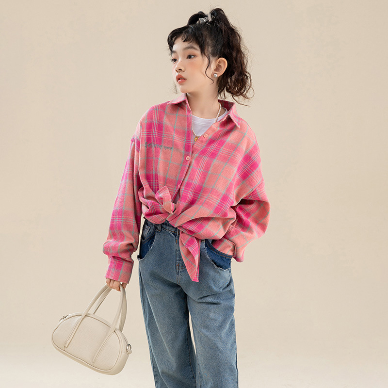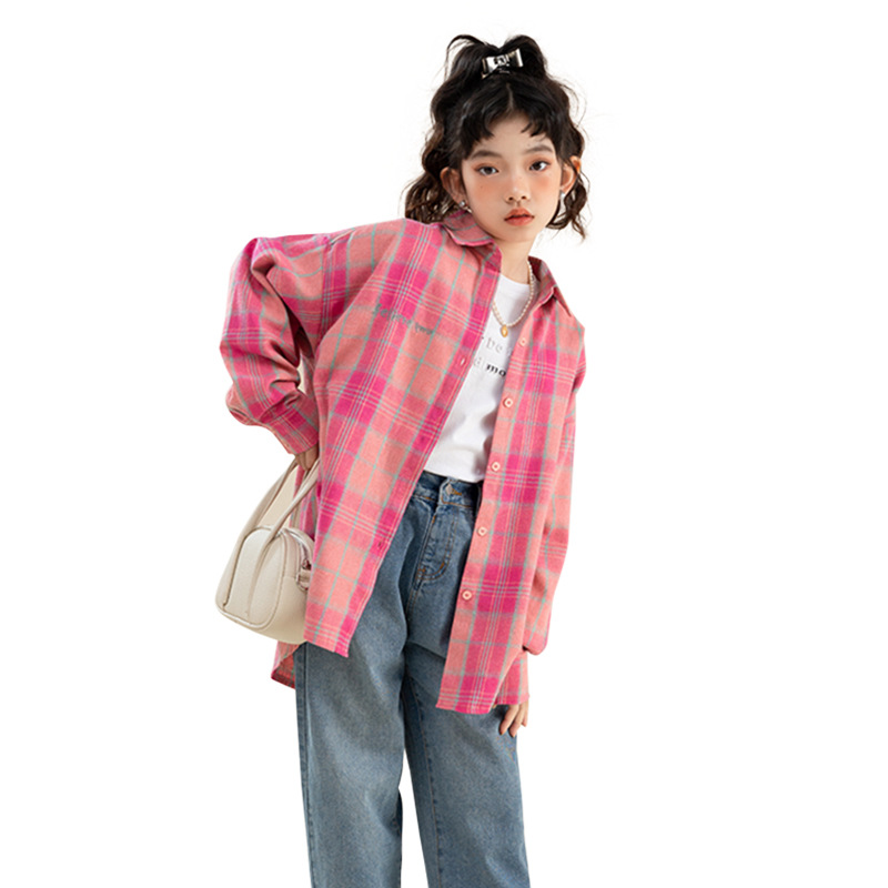 Рубашка в клетку для девочек, новинка 2026 года, модная рубашка для подростков на весну и осень, стильная детская весенняя рубашка, привлекательная и трендовая.