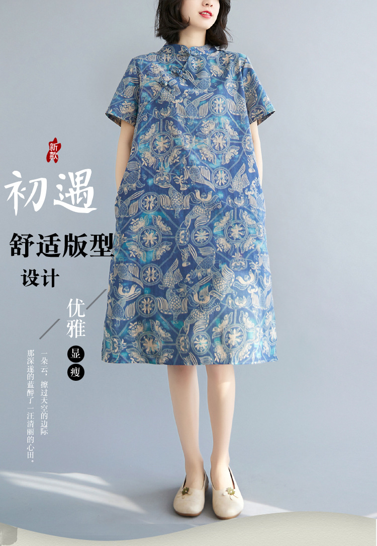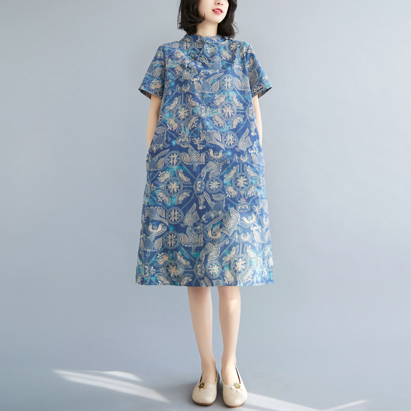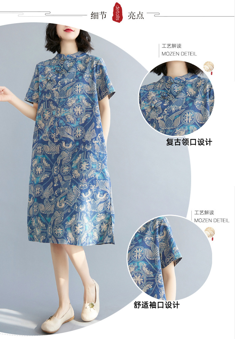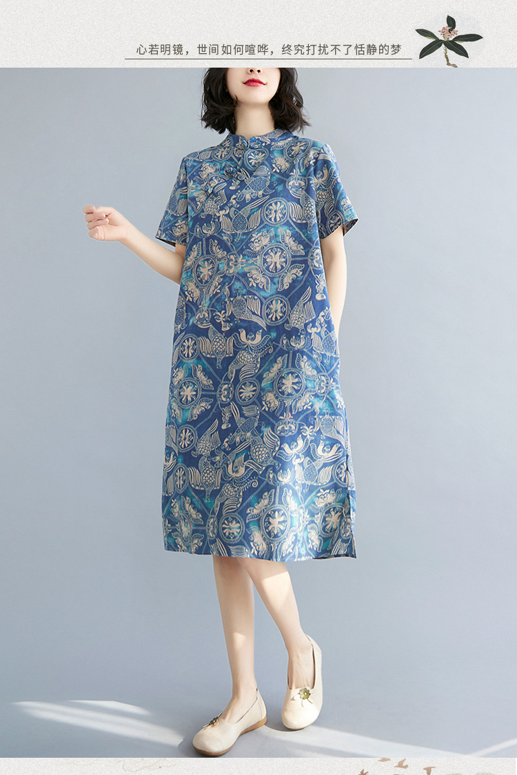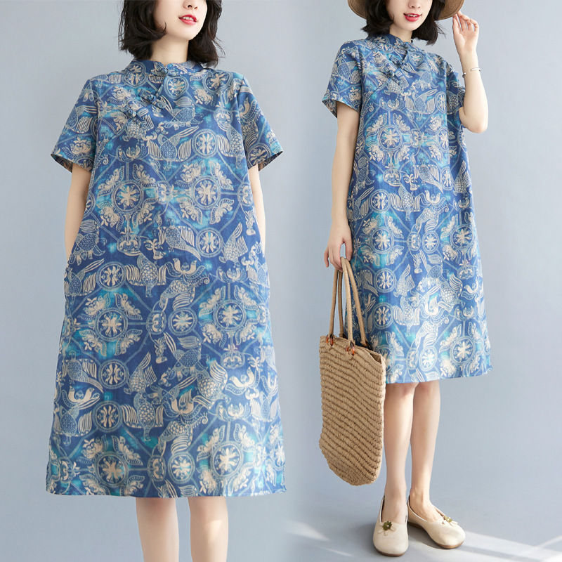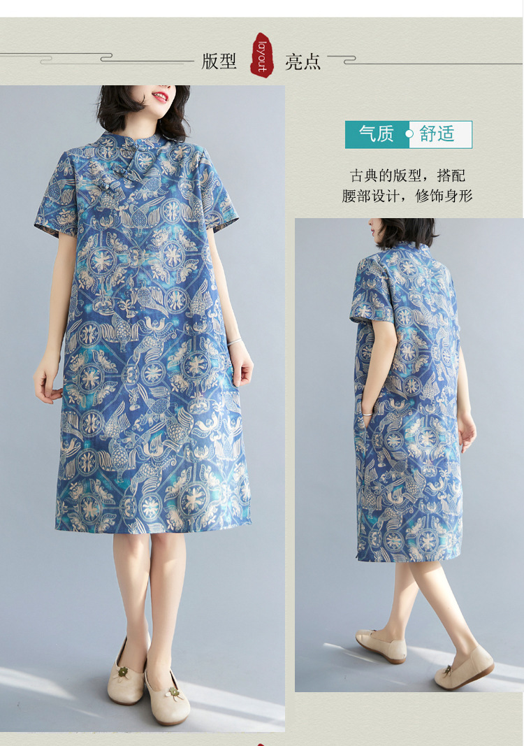 Настоящее летнее Ретро художественное китайское улучшенное свободное платье средней длины Cheongsam для женщин