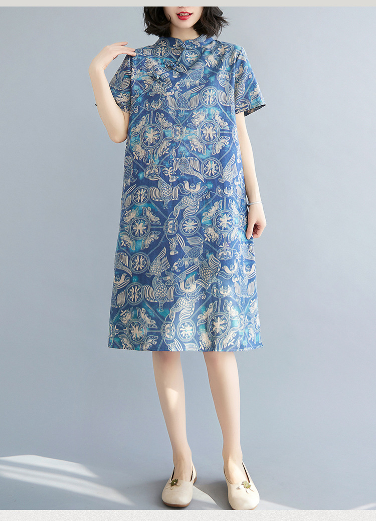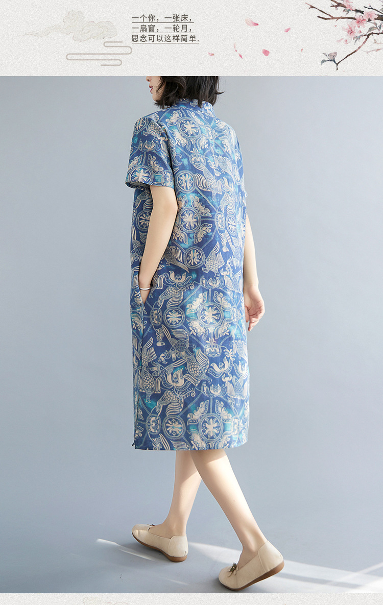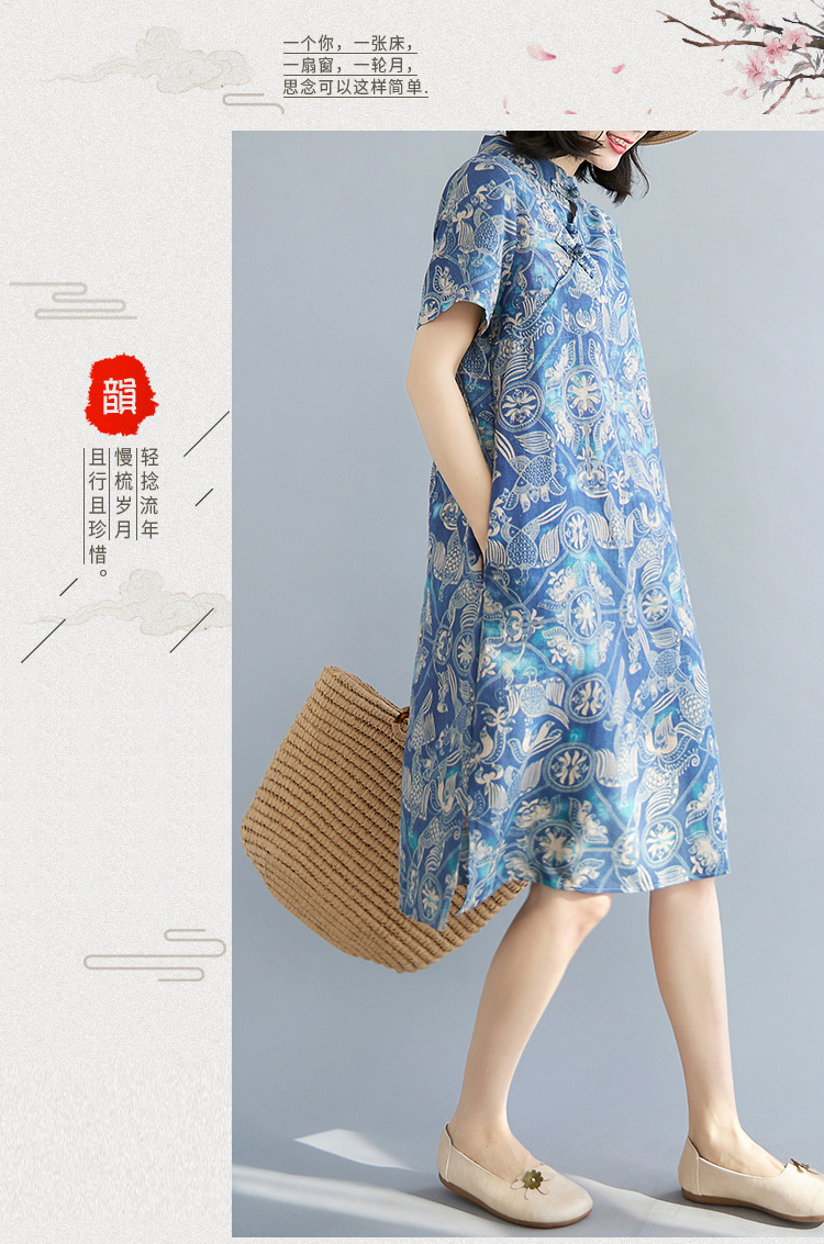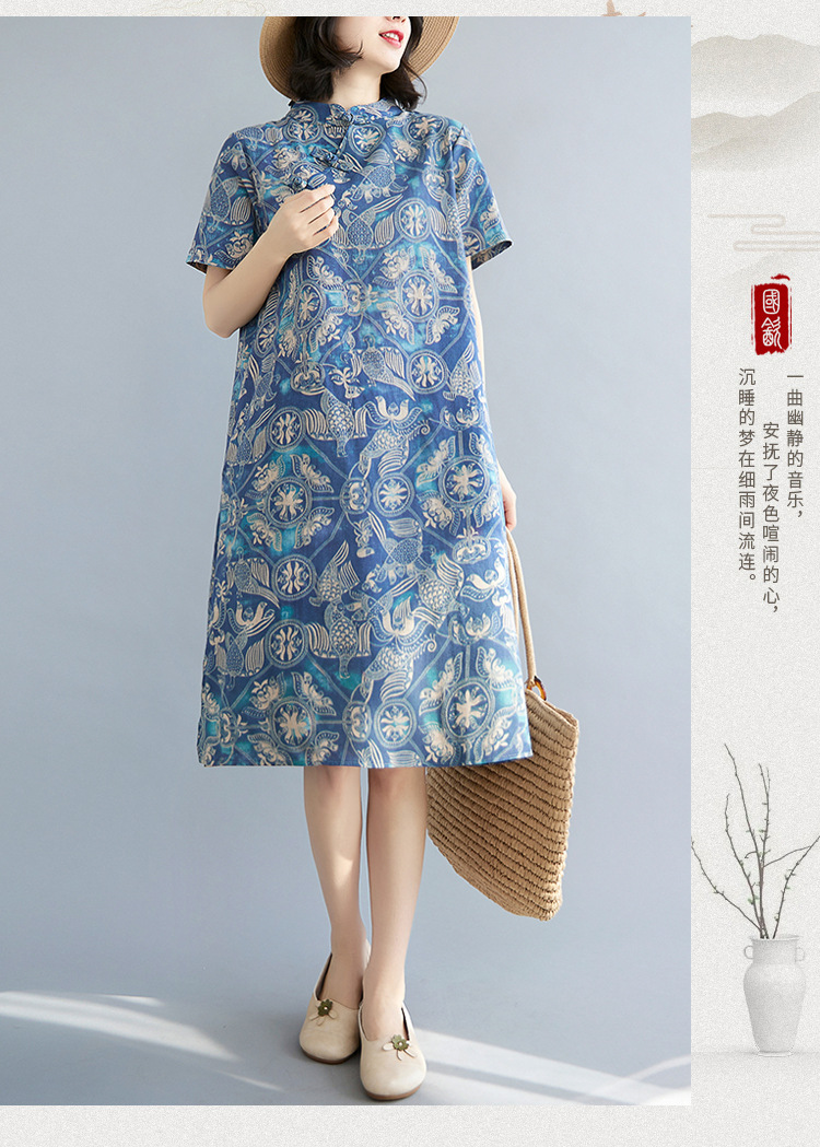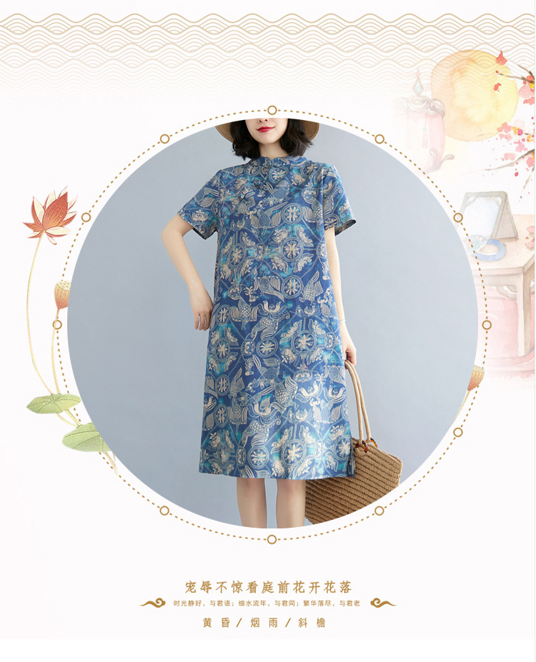 Настоящее летнее Ретро художественное китайское улучшенное свободное платье средней длины Cheongsam для женщин
