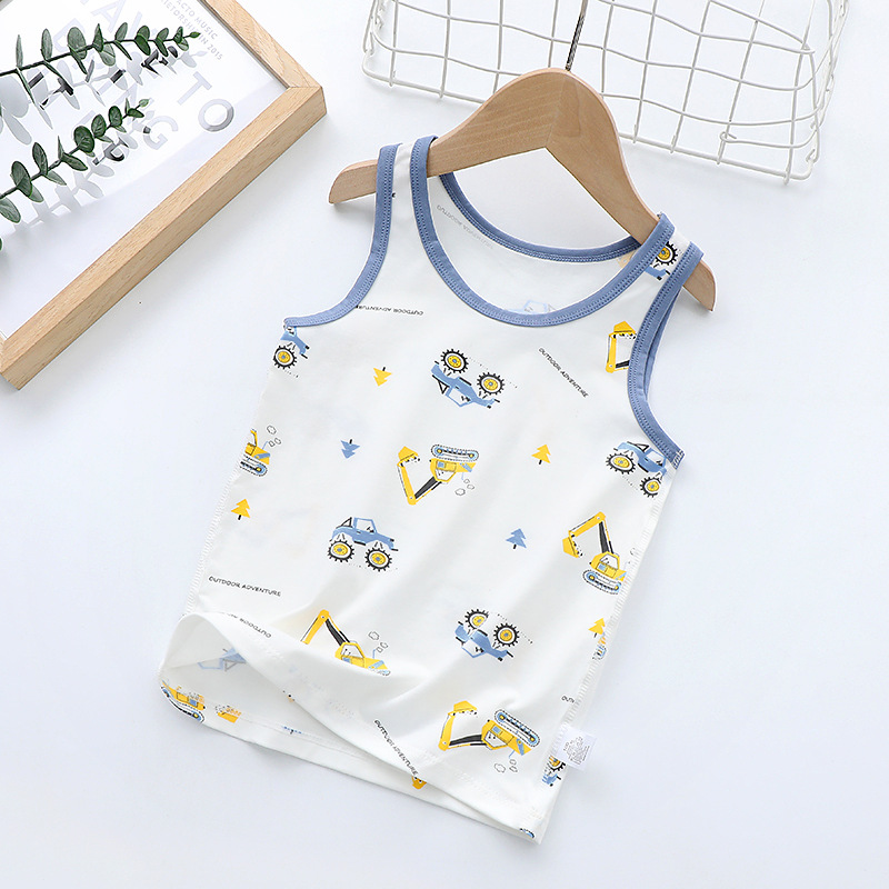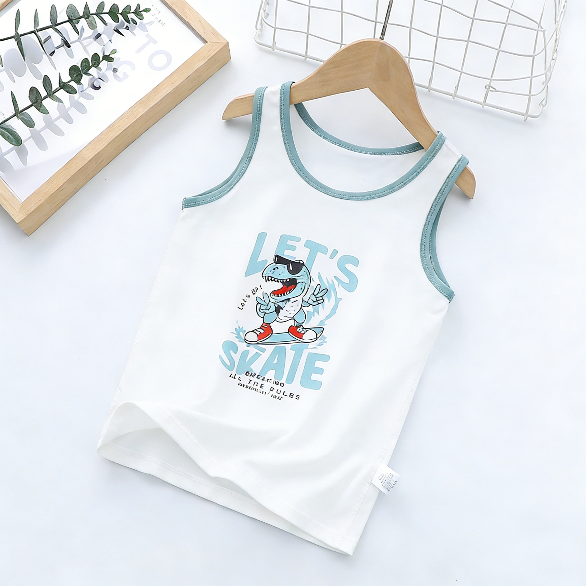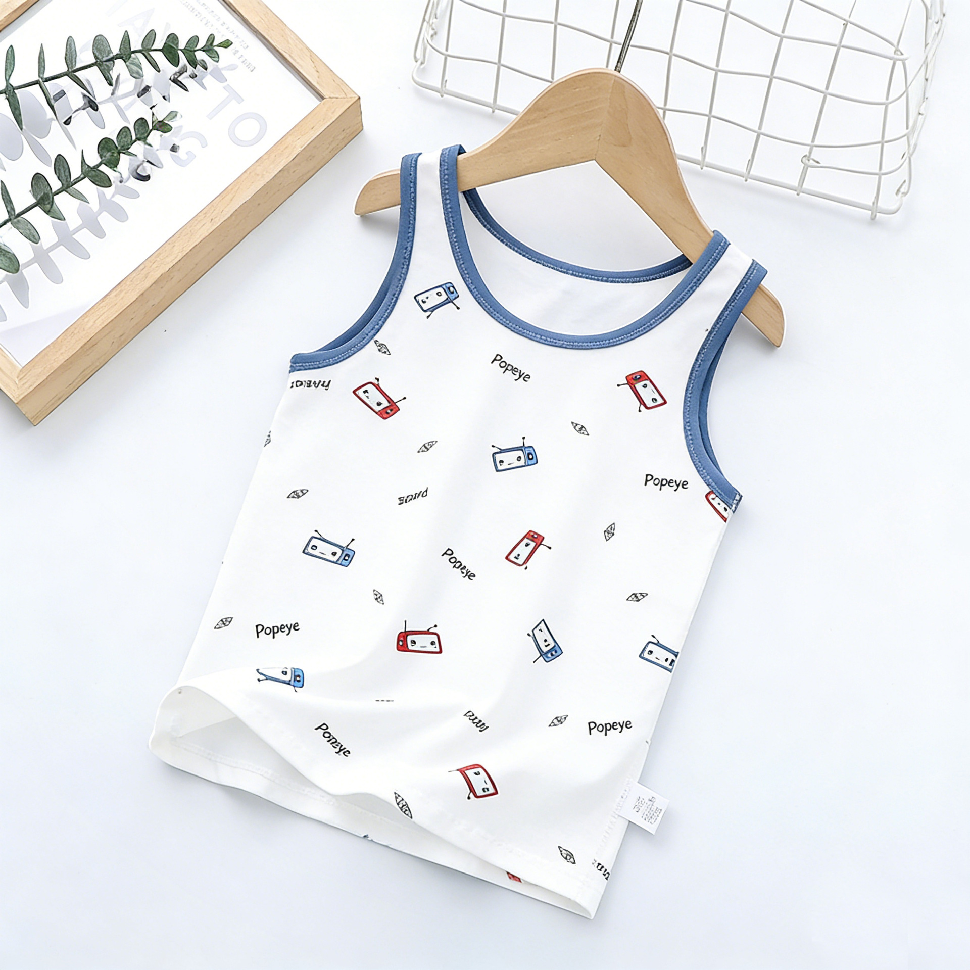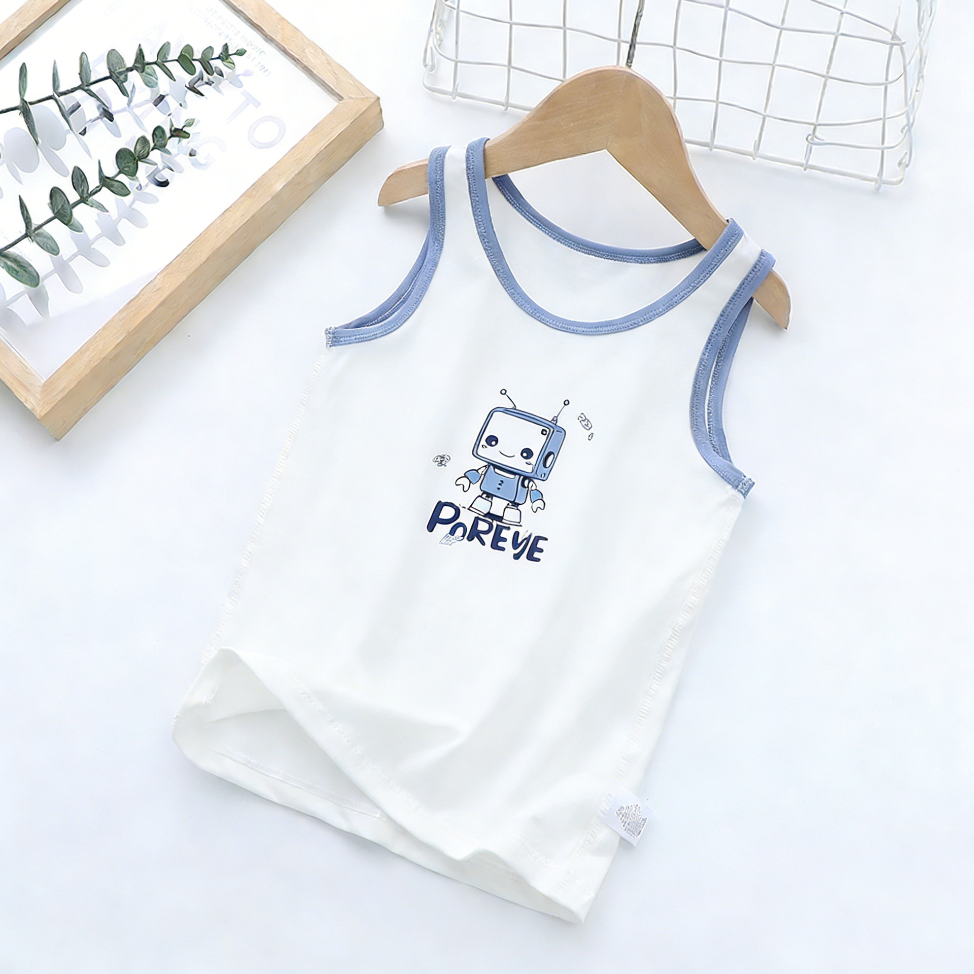 2025 новый летний детский жилет без косточек с мультяшным принтом из чистого хлопка для мальчиков, простой топ без рукавов