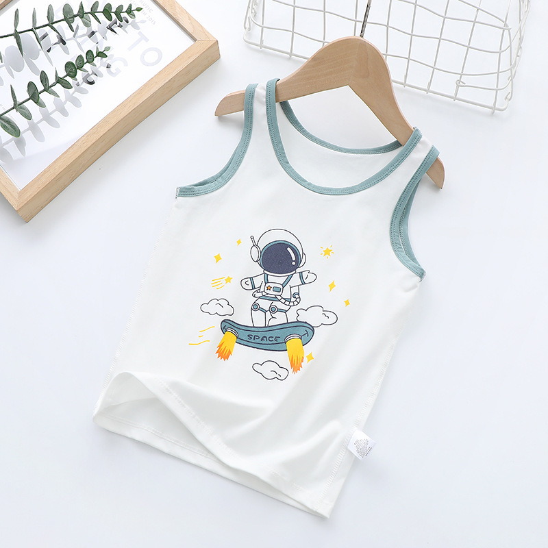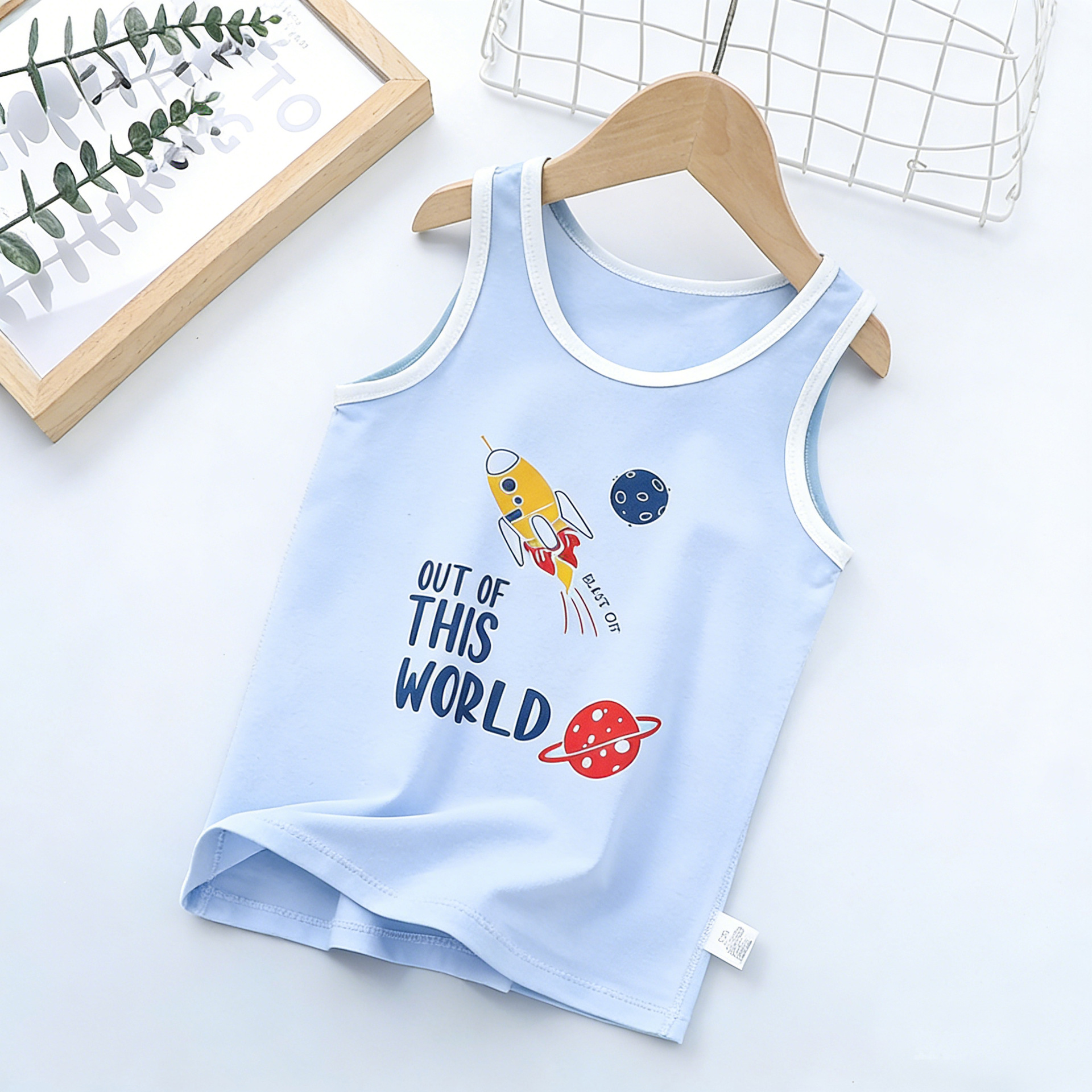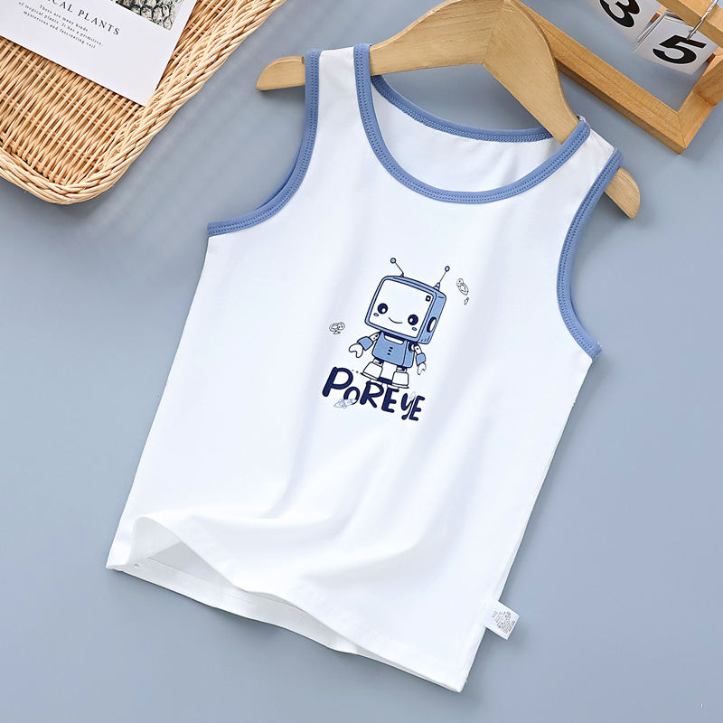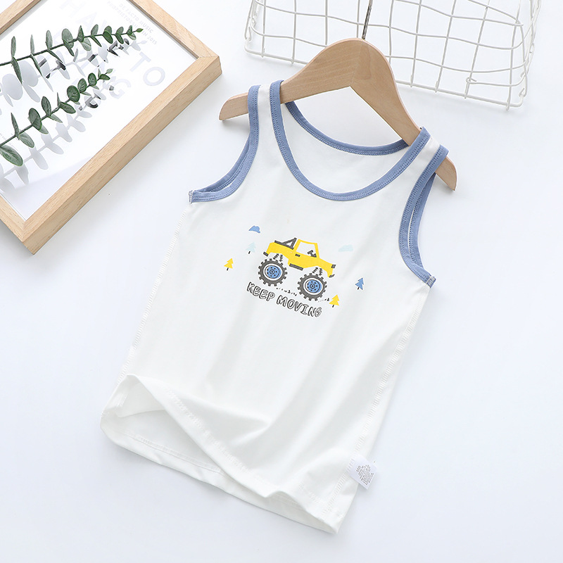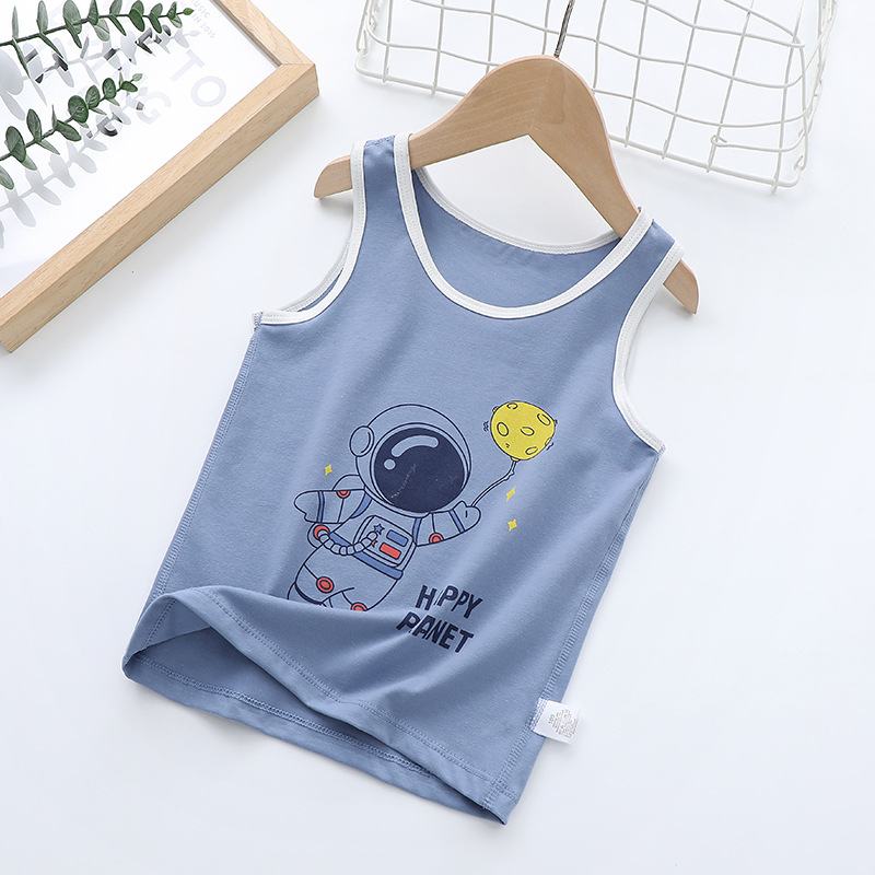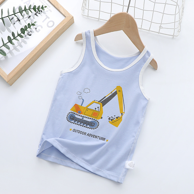 2025 новый летний детский жилет без косточек с мультяшным принтом из чистого хлопка для мальчиков, простой топ без рукавов
